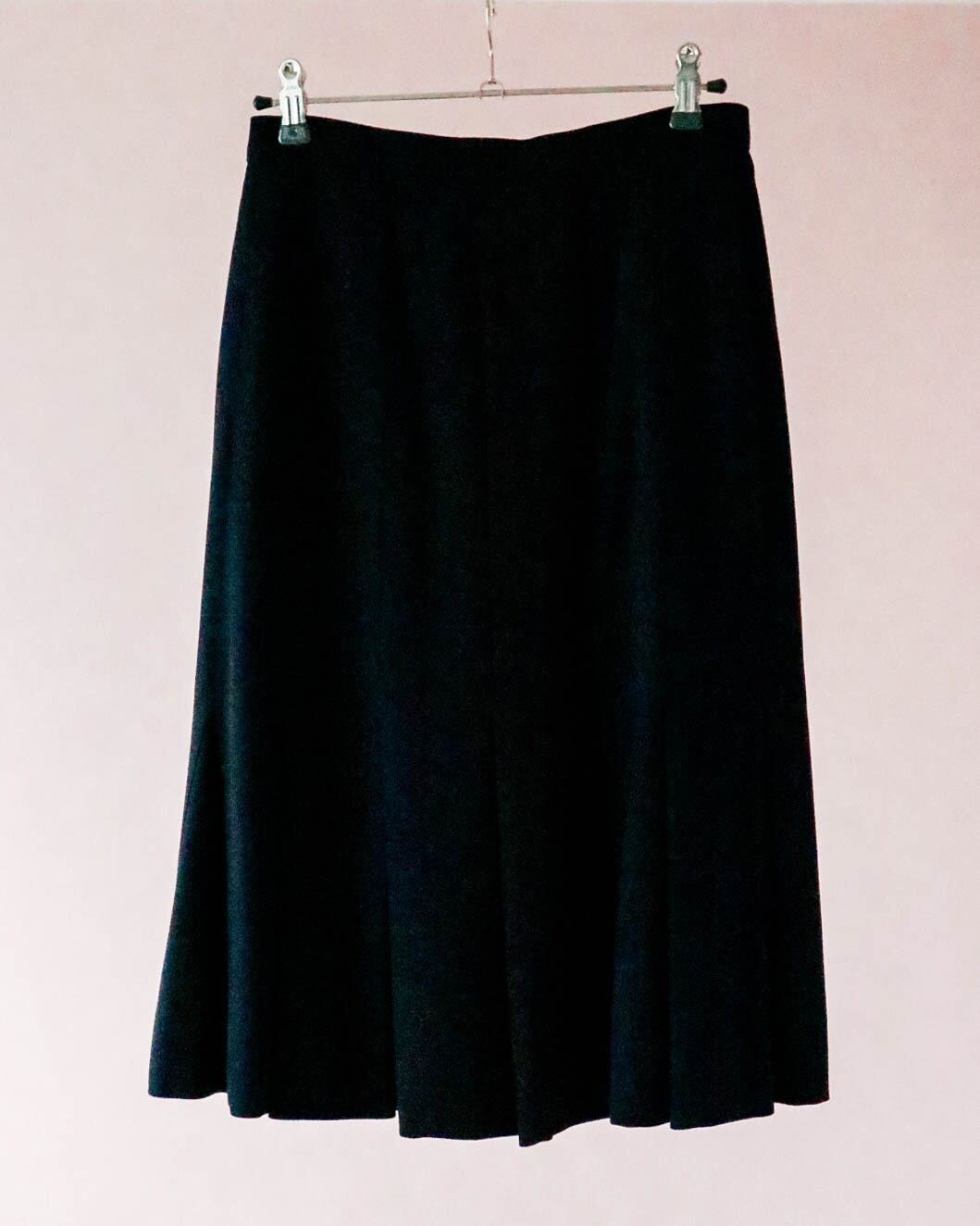 品格漂うマーメイドシルエットのプリーツスカートはシャネルのもの。