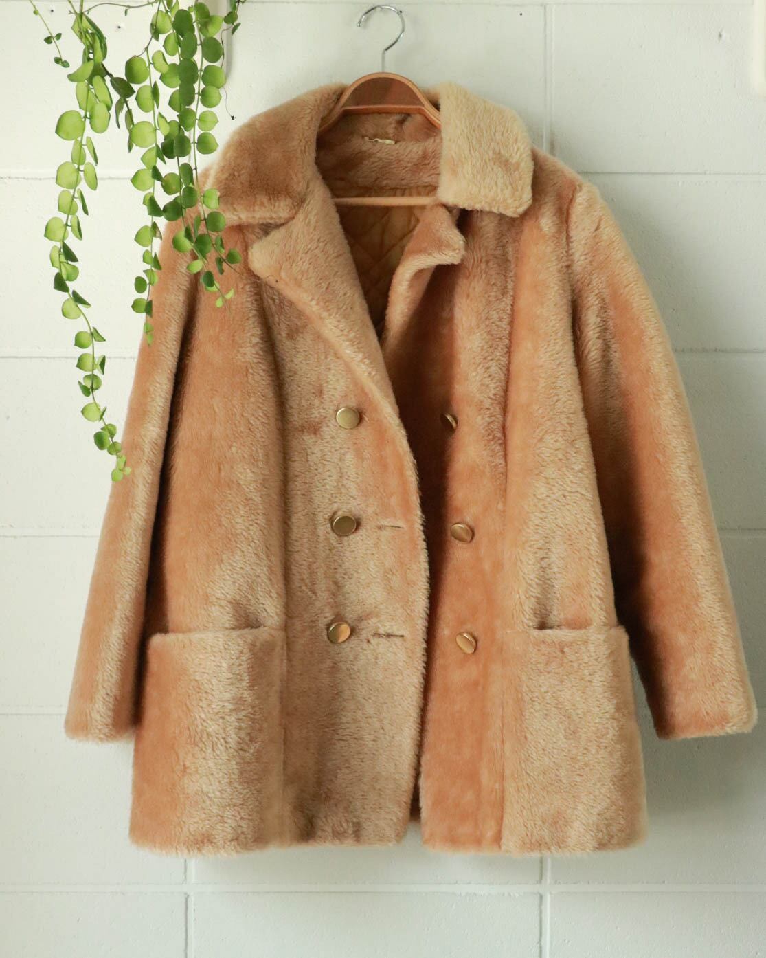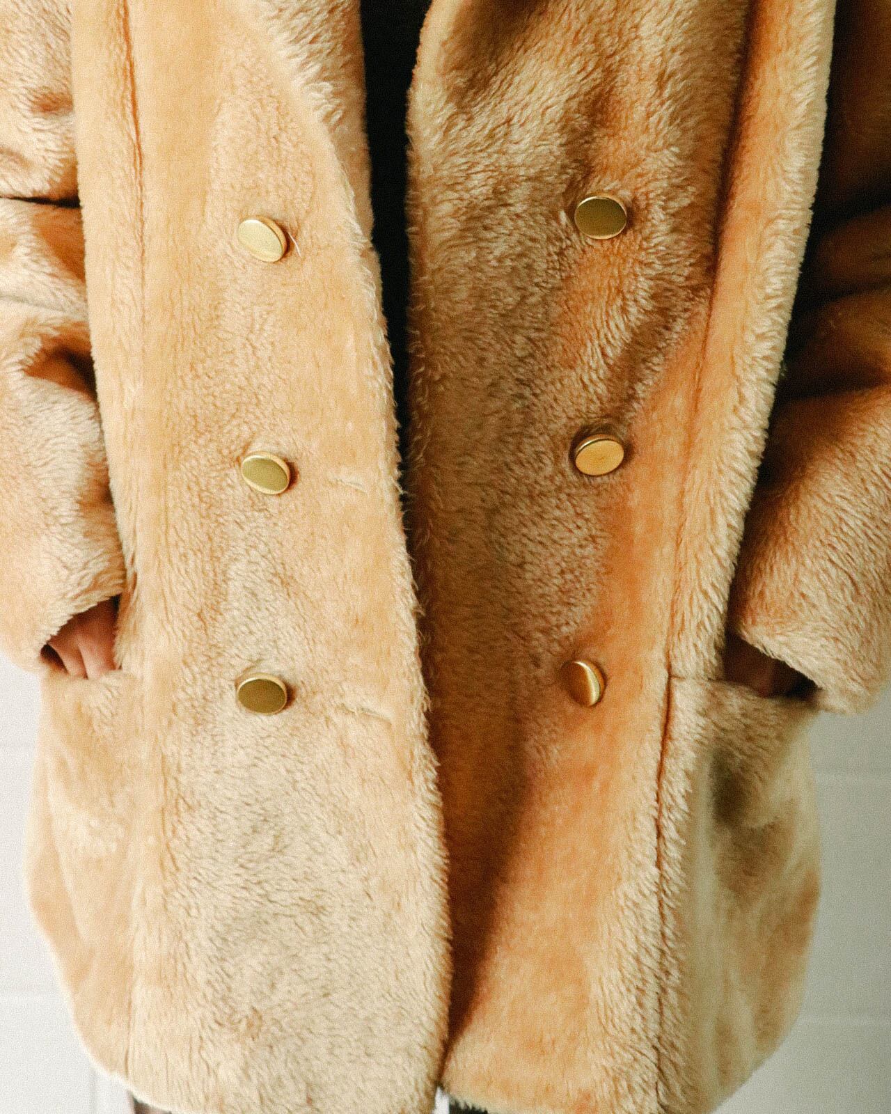light camel brown eco fur coat