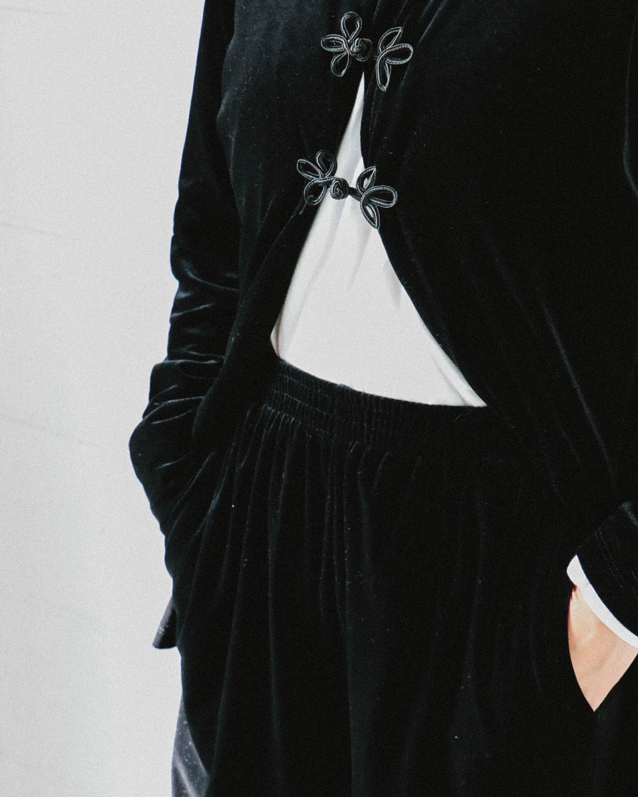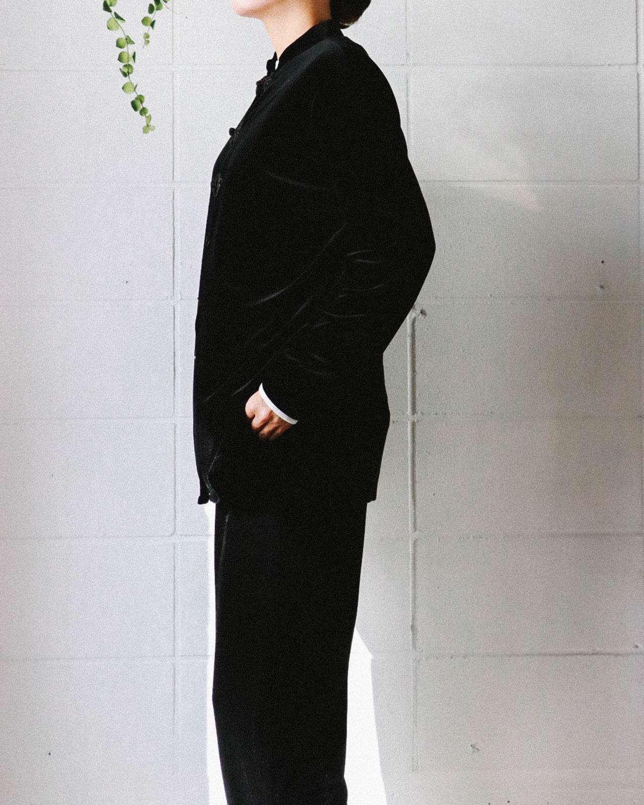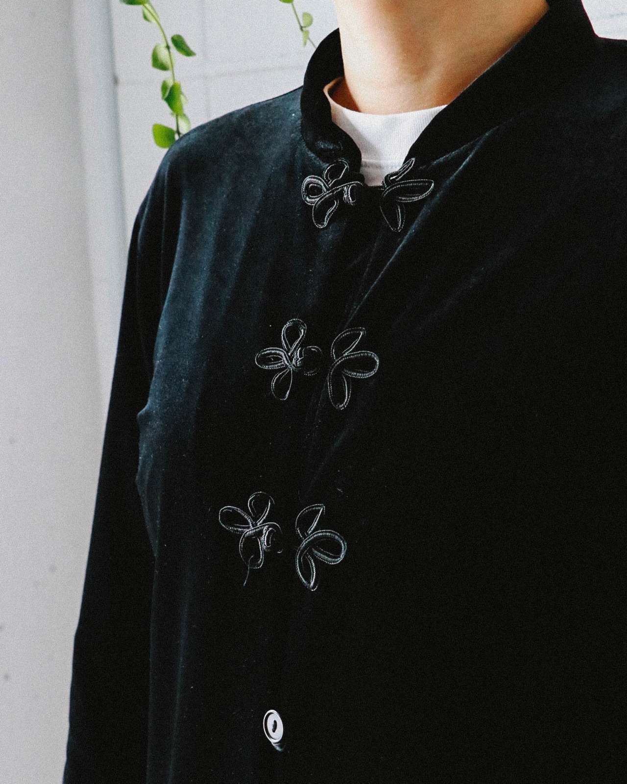 勢いのとまらないチャイナムード。チャイナシャツはよくありますがヴィンテージの羽織れるレアなアイテムが入荷。ベロア素材とのコンビネーションが絶妙な一点です。オールブラックで統一したコーデの他、補色な赤などビビッドカラーやチェック柄をボトムスにもってきてもいいですね。ちょっと癖ありアイテムを纏って差をつけて。