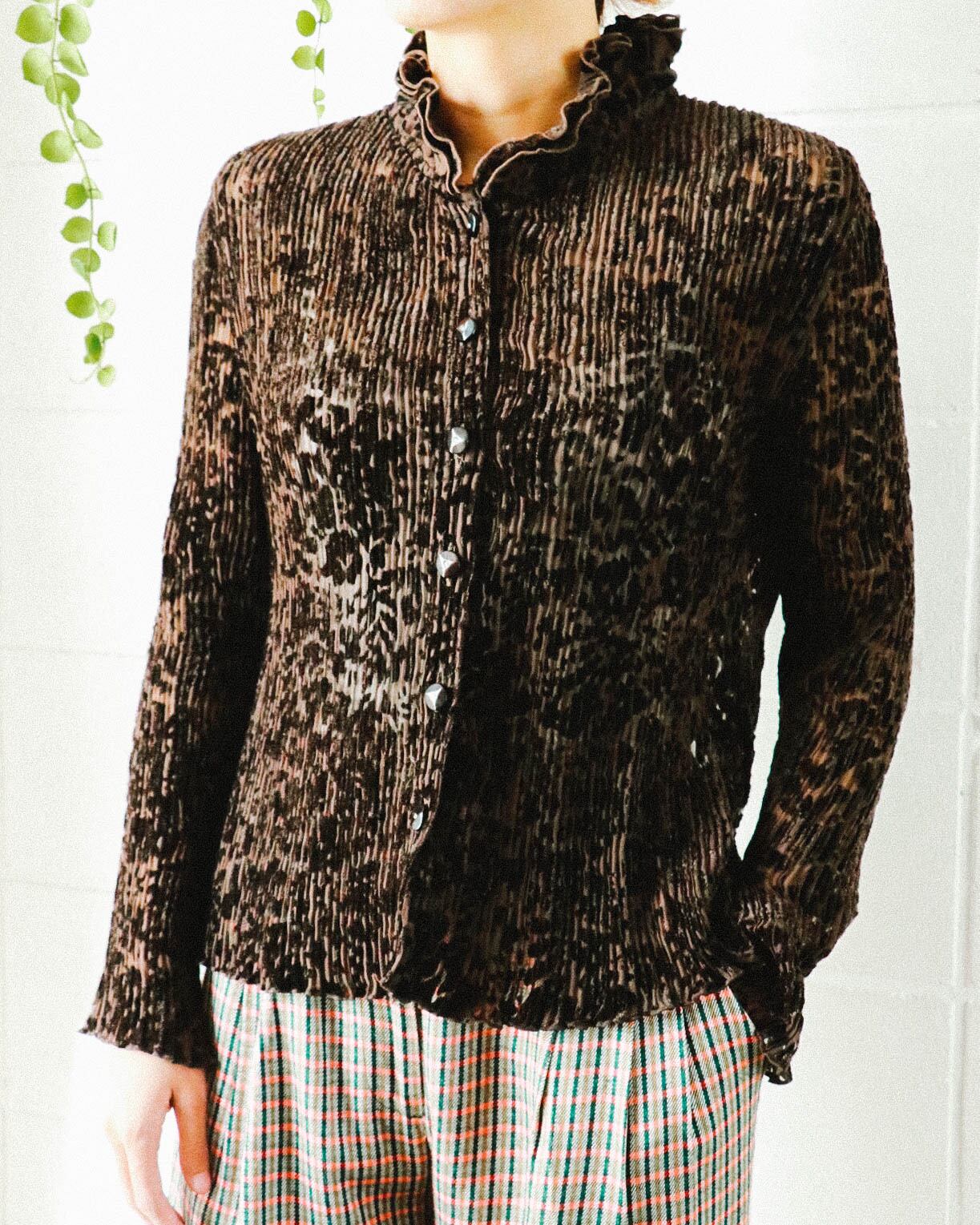 フリルネックにはワイヤーが入っているので、立てても折り曲げて襟のようにして着るのも◎