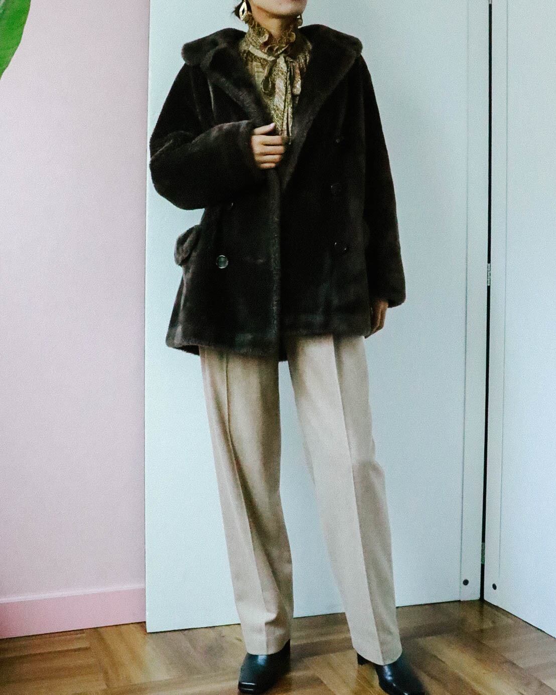 60s eco fur double coat