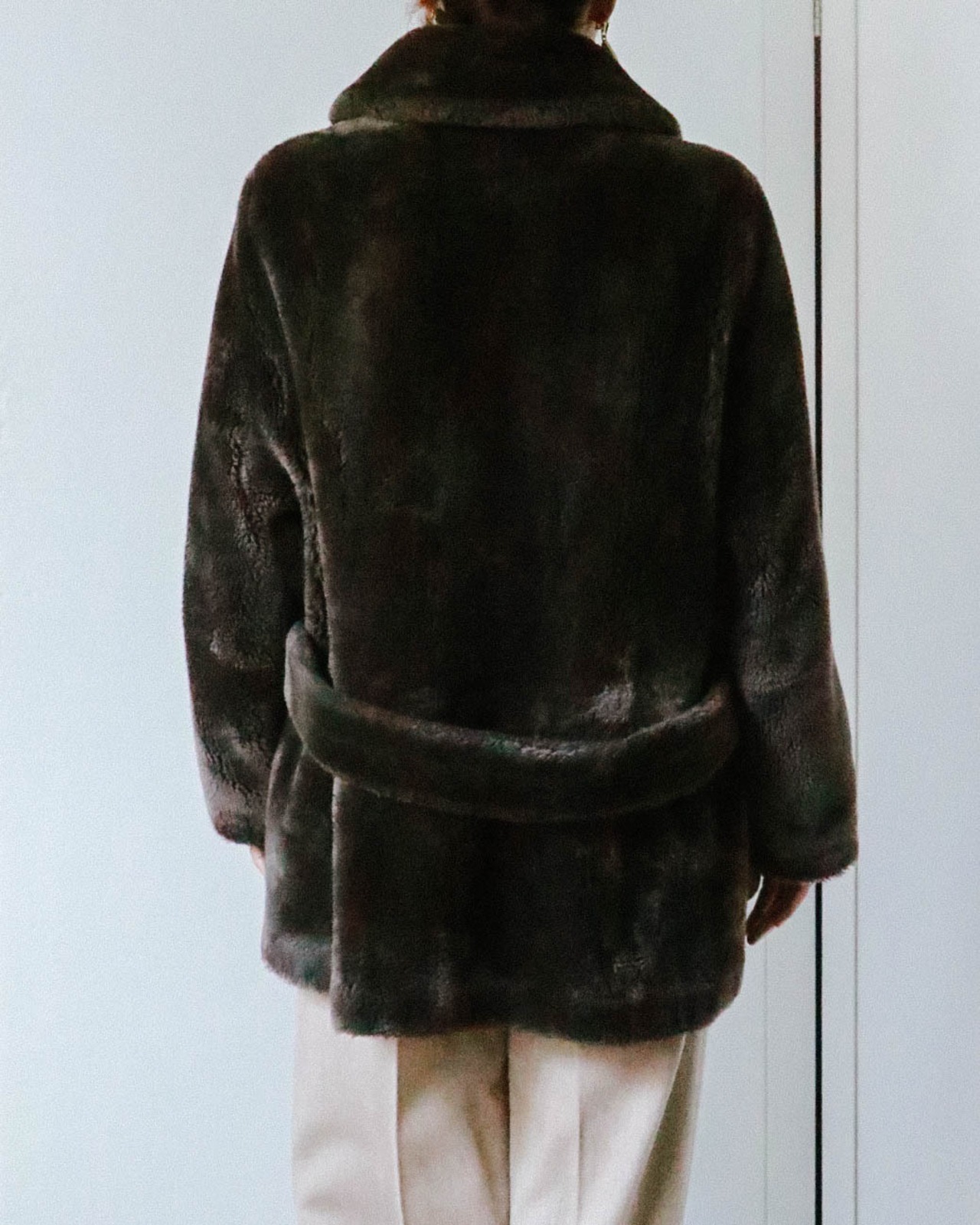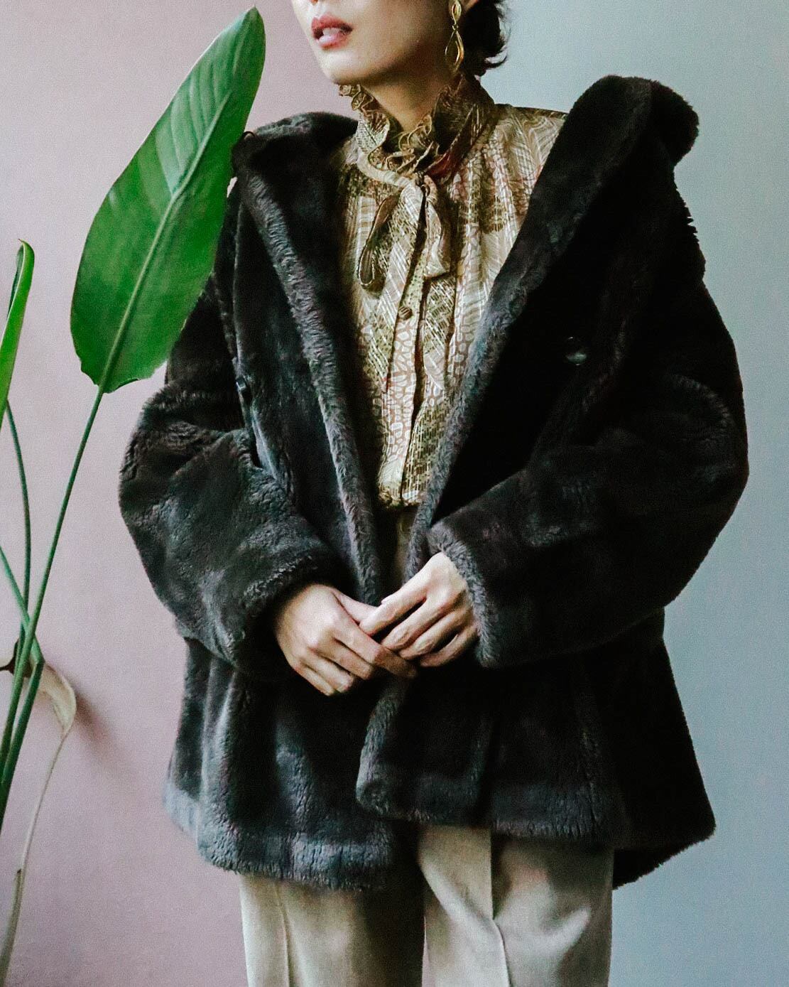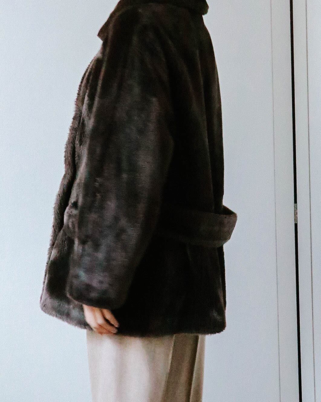 こちらのコートは特有の濃淡がダークブラウンにカッチリはまりリアルファー顔負けの高級感漂う一着です。