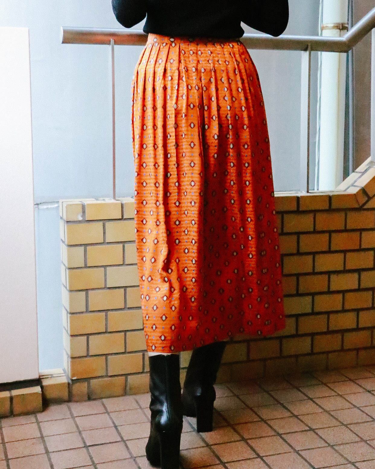 orange silk pleated skirt