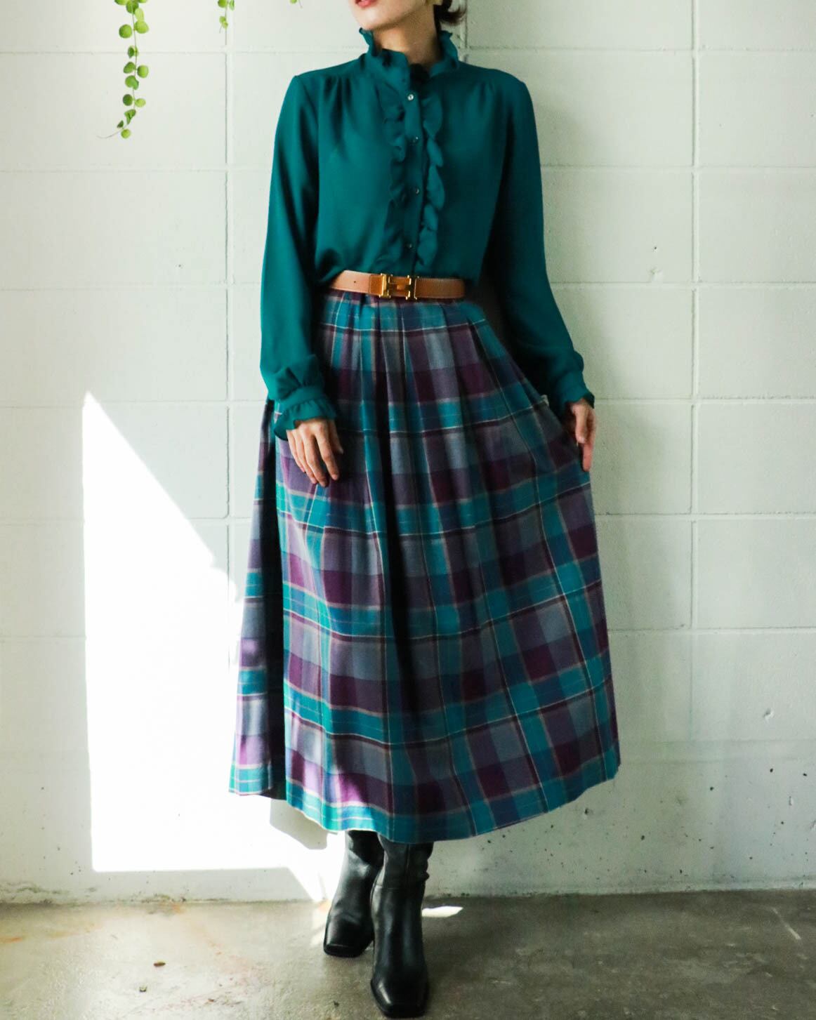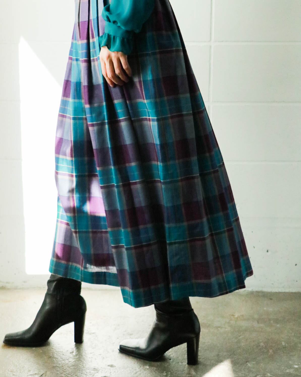 ヴィンテージならではのレトロチェックに心惹かれるロングスカートが入荷。