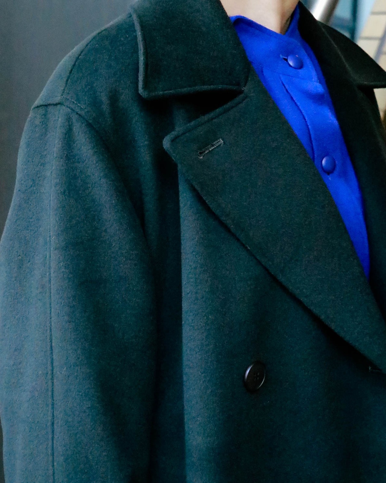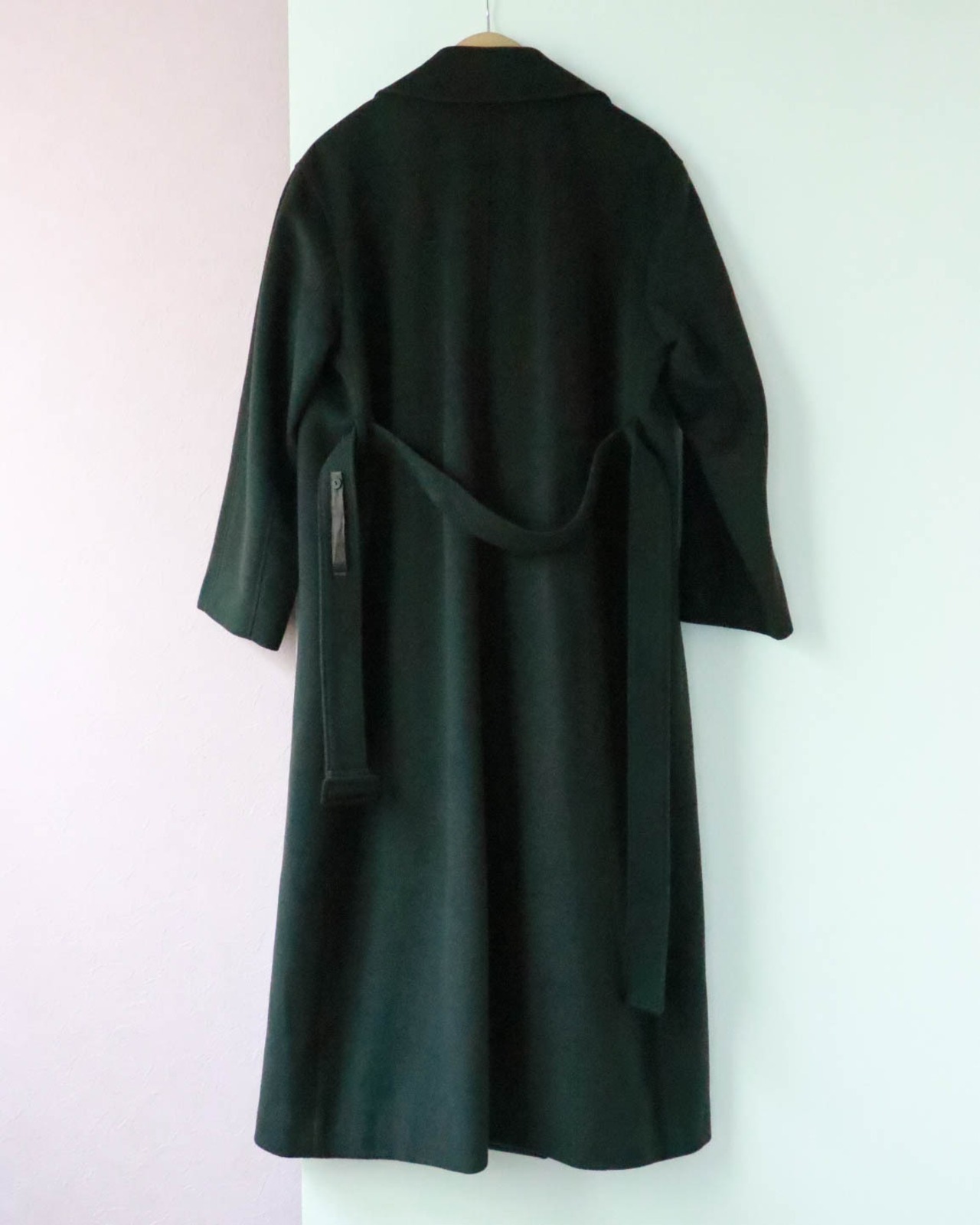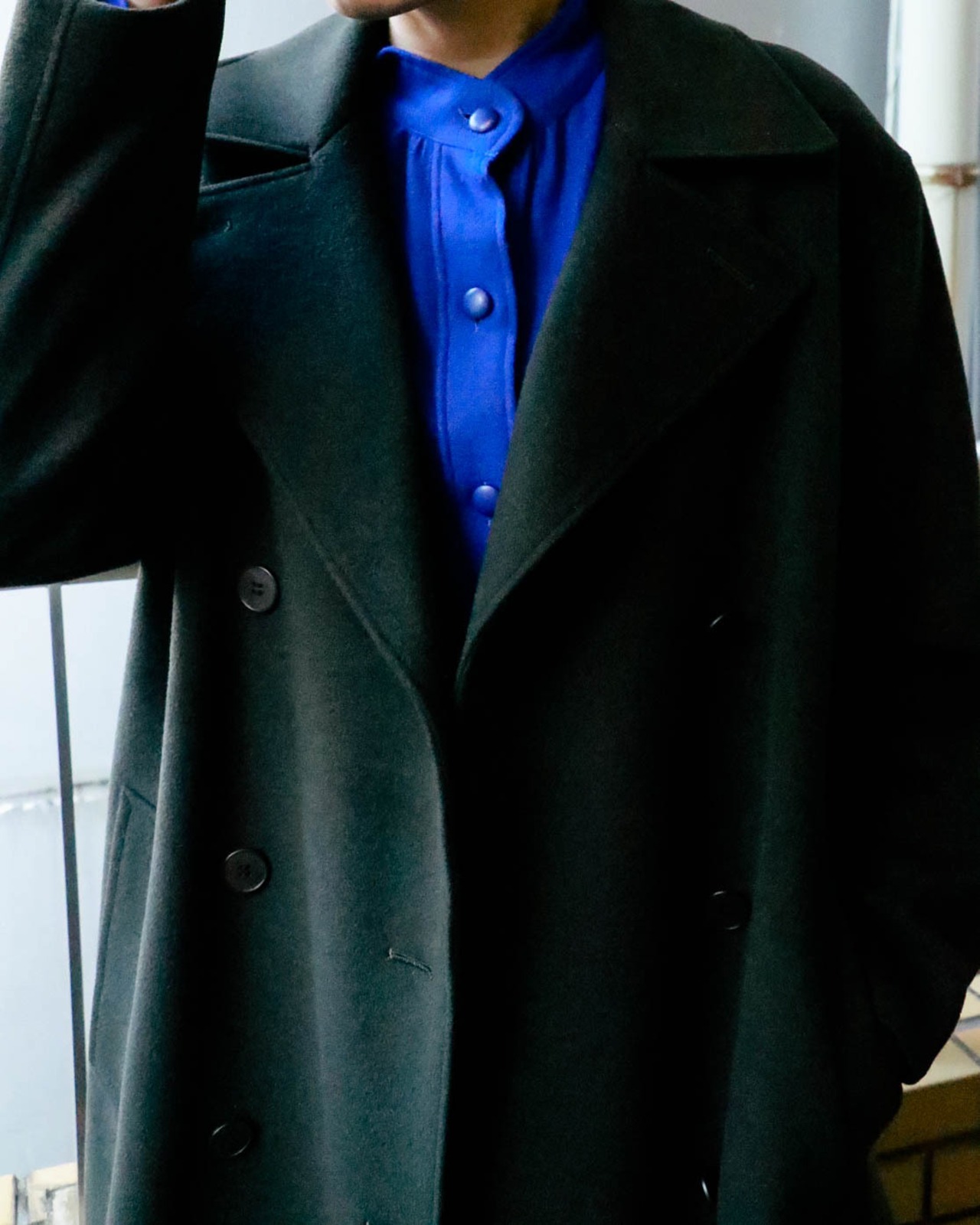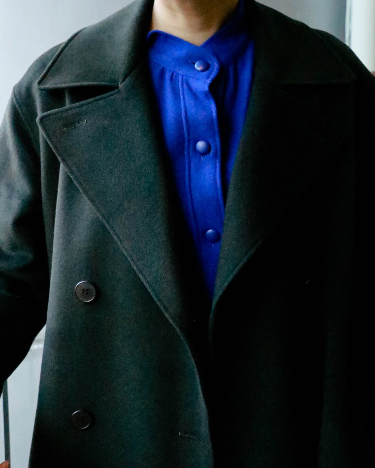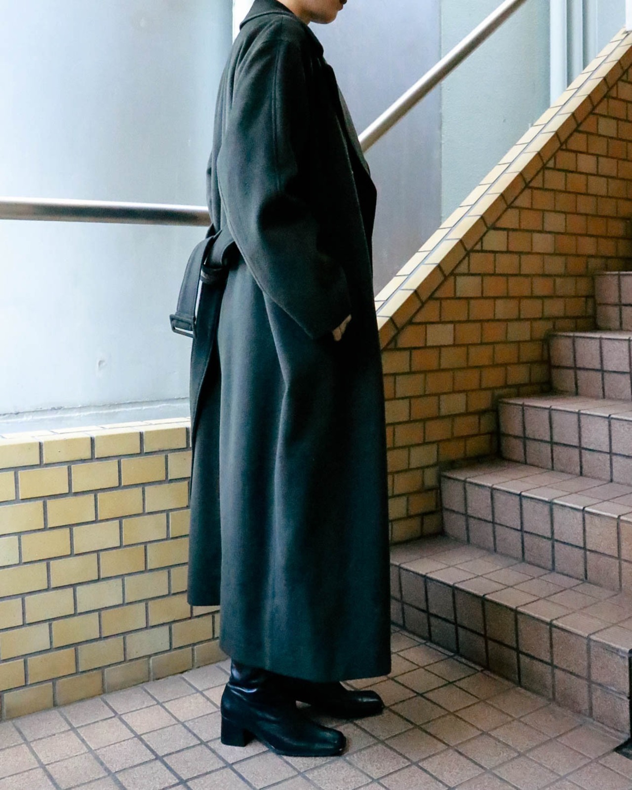 ボリューム感のあるゆったりとしたシルエットでしっかりと長さのあるロングコートは、どんなコーディネートにも合わせやすい。深みのあるカーキがぐっとオシャレ度をあげてくれます。