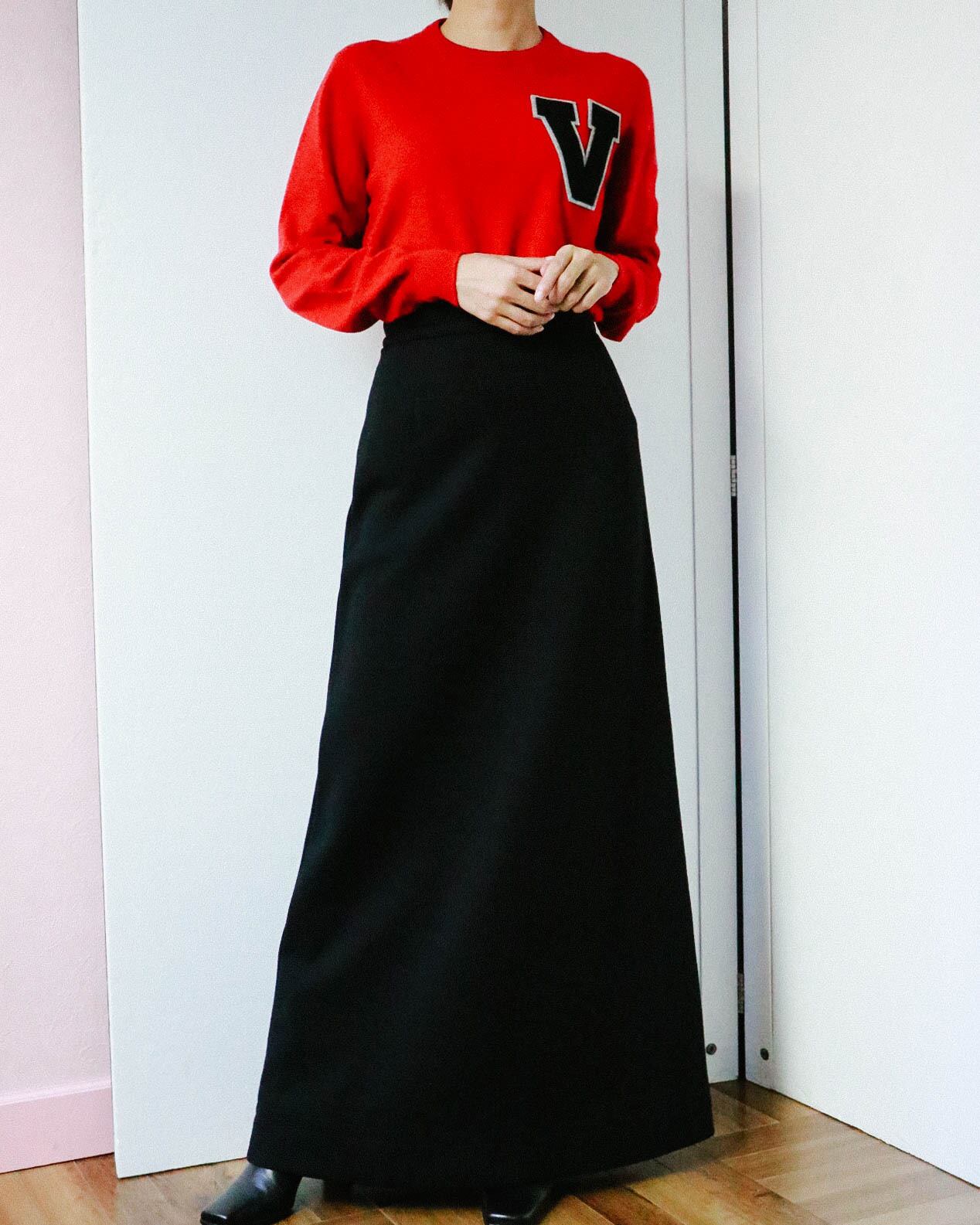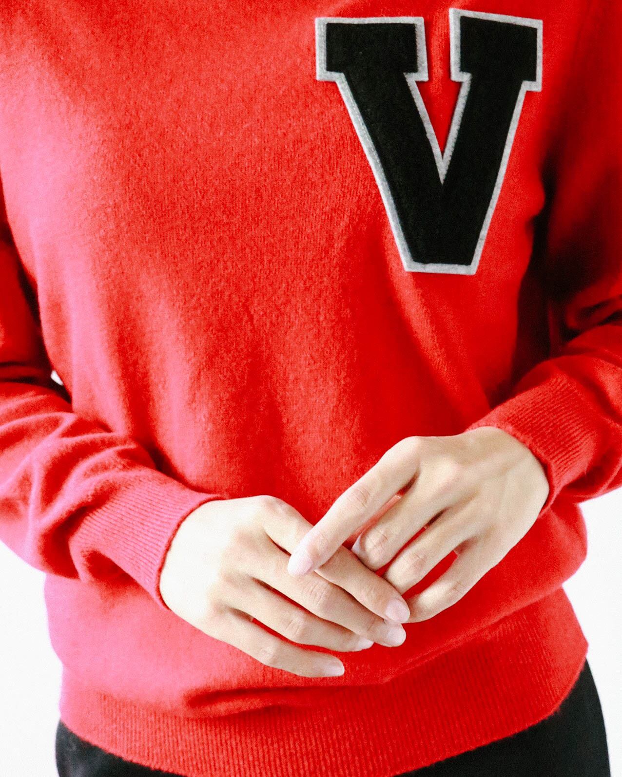 程よく詰まったクルーネックで絶妙なサイズ感、胸元のVワッペンがアクセントに。