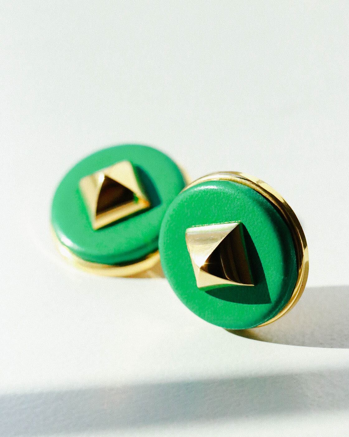 鮮やかなグリーンカラーのレザーにゴールドのピラミッド型のスタッズという大胆なデザインながらもエルメスらしいエレンガスさを感じます。