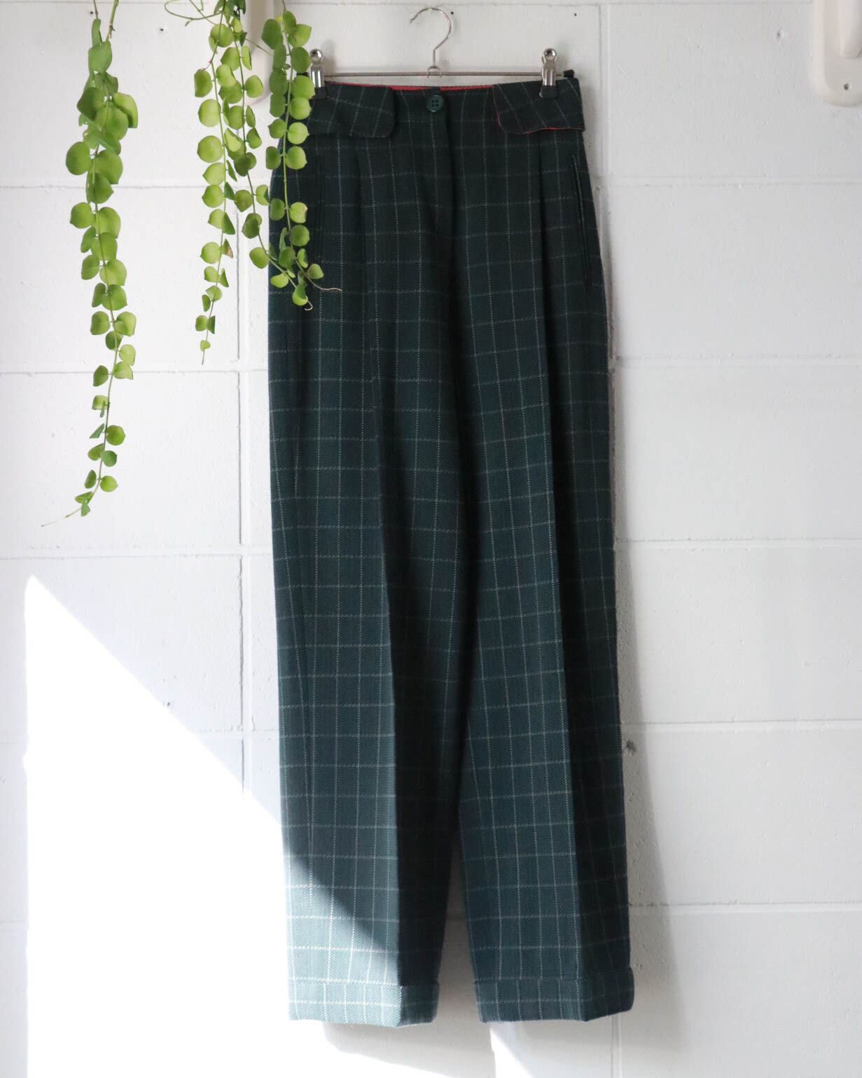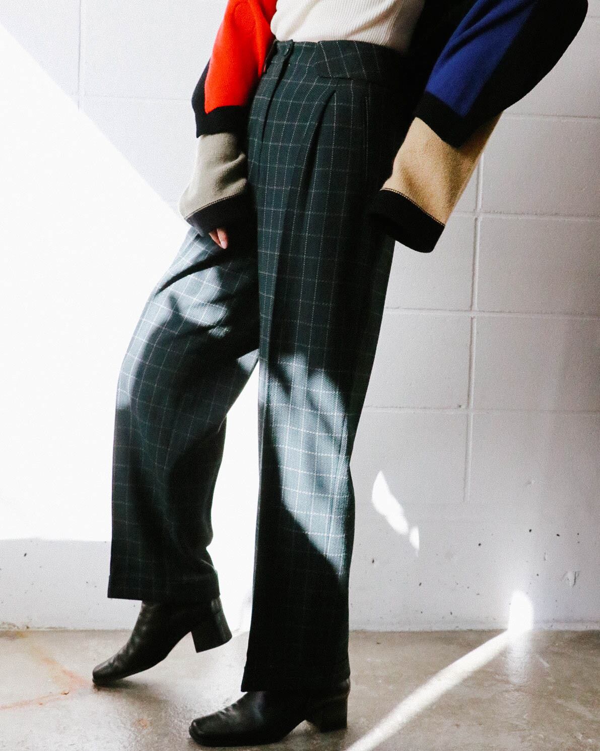 シックな印象をうける深みのあるグリーンにウィンドペン柄が特徴的。