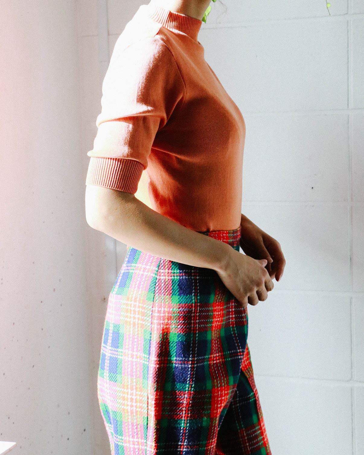 今から春まで楽しめる明るい色合わせが特徴的。ハイウエストに程よいフレアシルエットでスタイルアップ効果抜群な一着です。