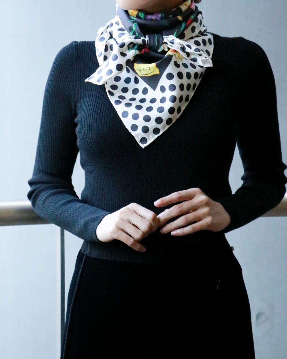 鮮やかでコントラストのある色柄がシーズン問わず楽しめるグッチの大判スカーフ