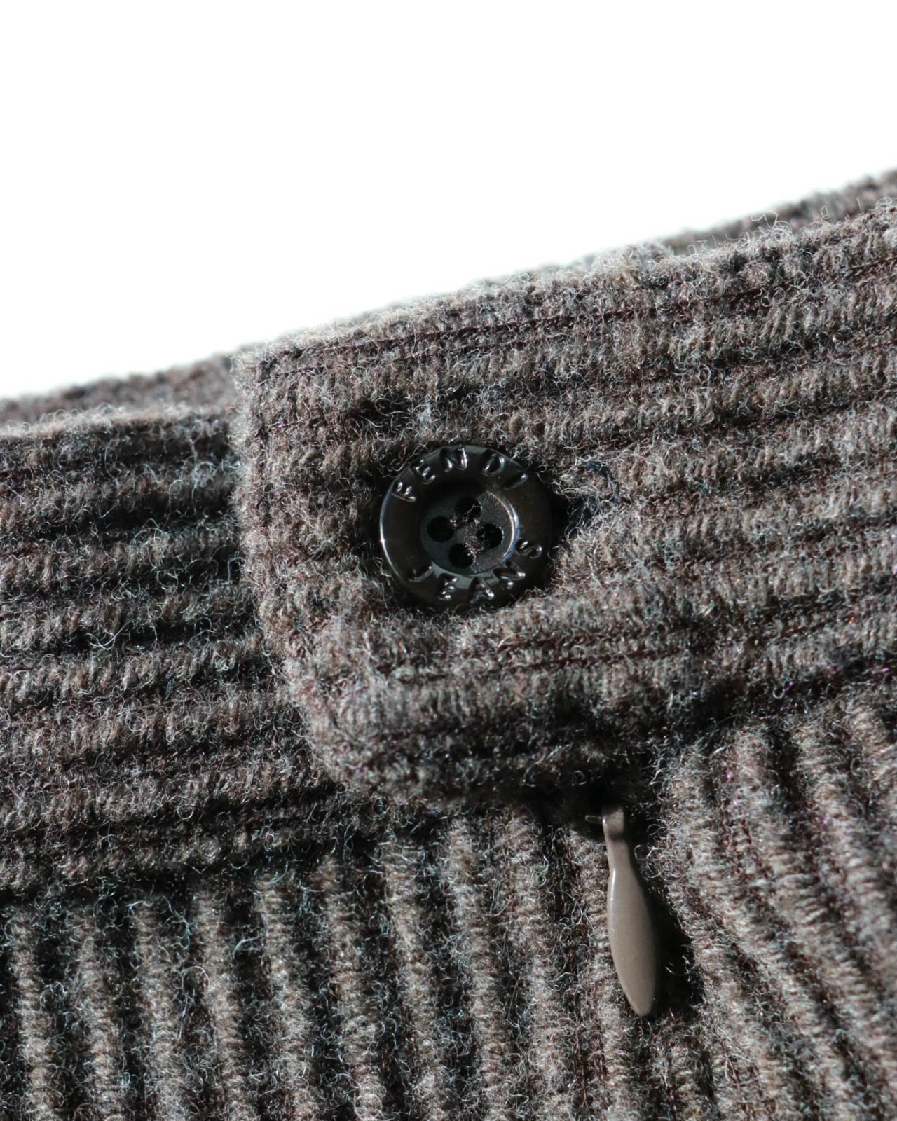 コーデュロイにサイドのベロアラインがアクセントを添え、温かみがありながら上品な印象。