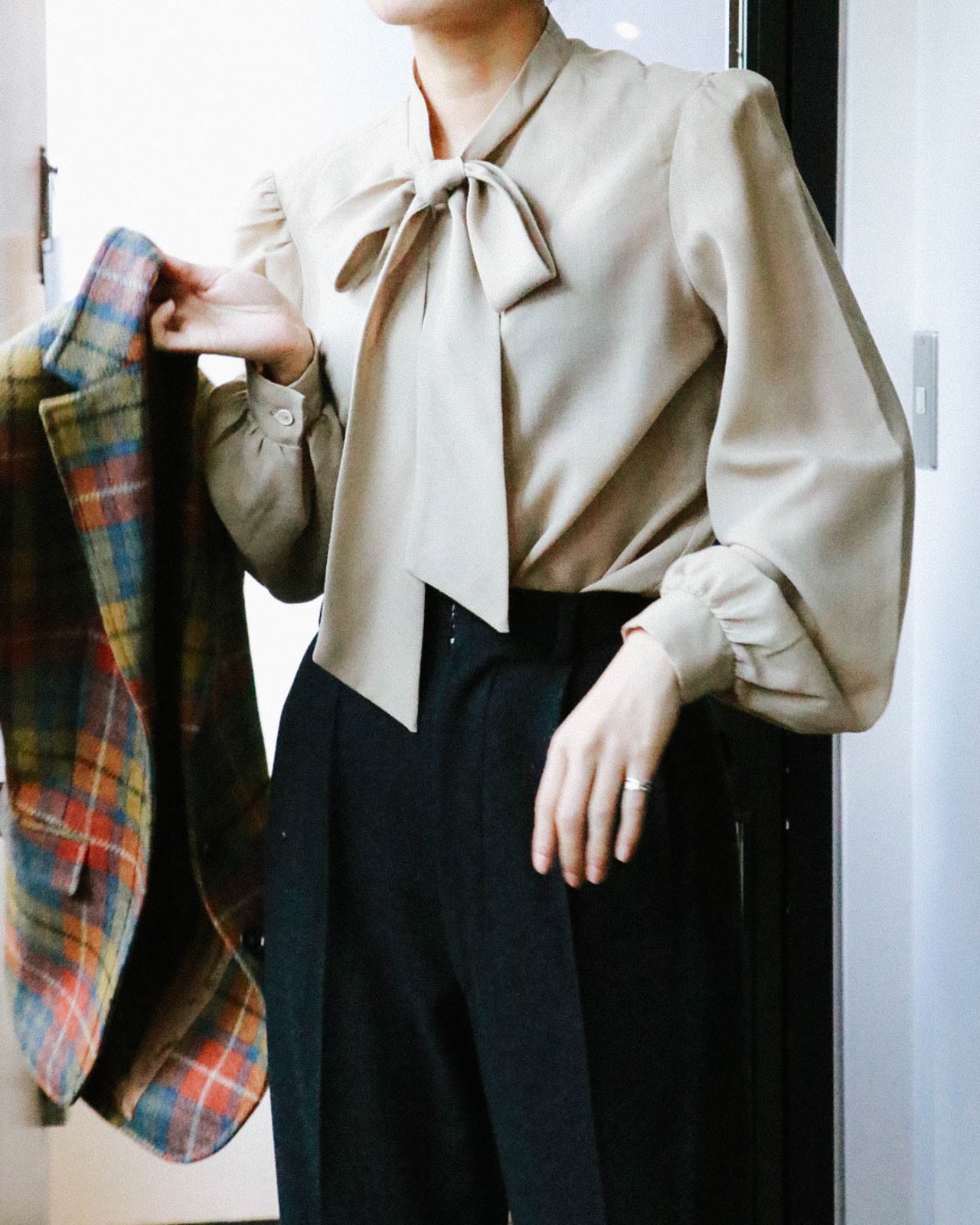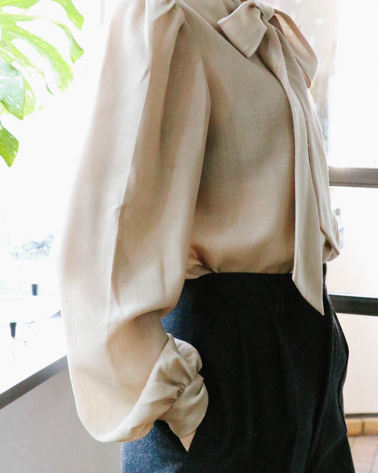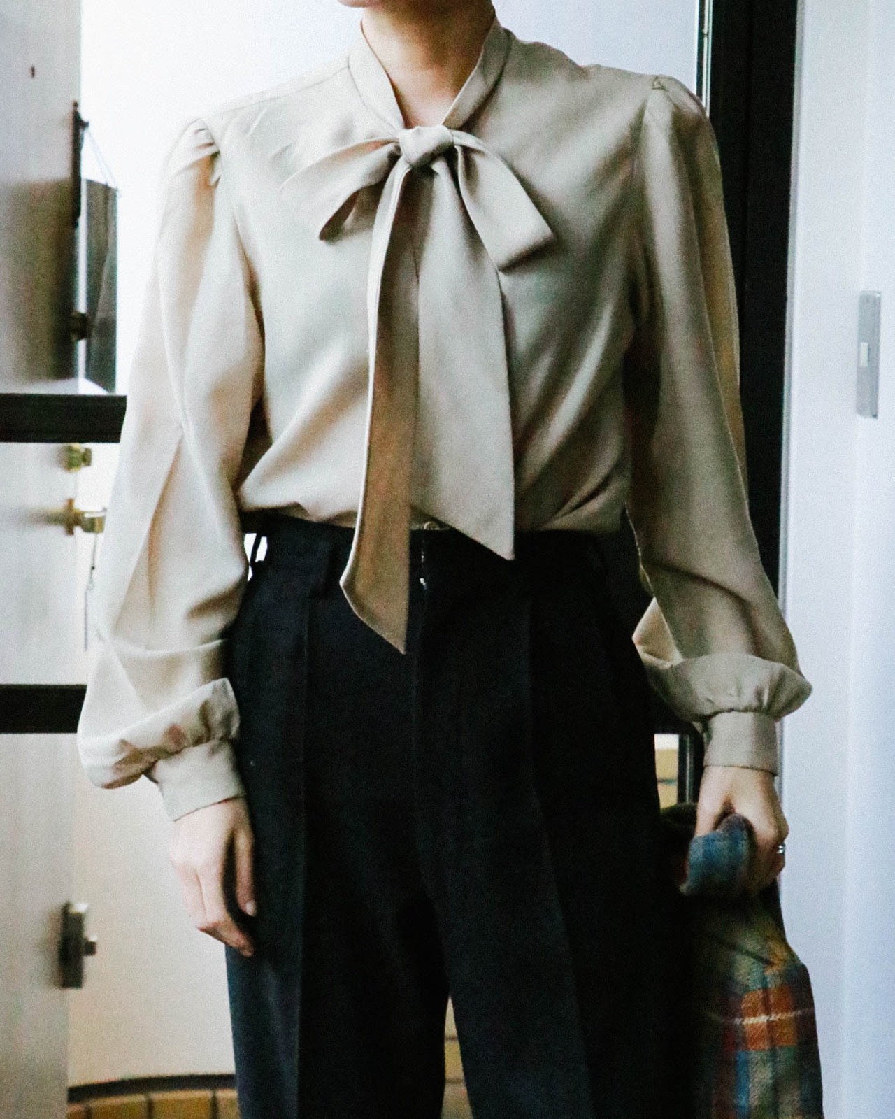 シーズンレスに着れるボウタイブラウスが入荷しました。