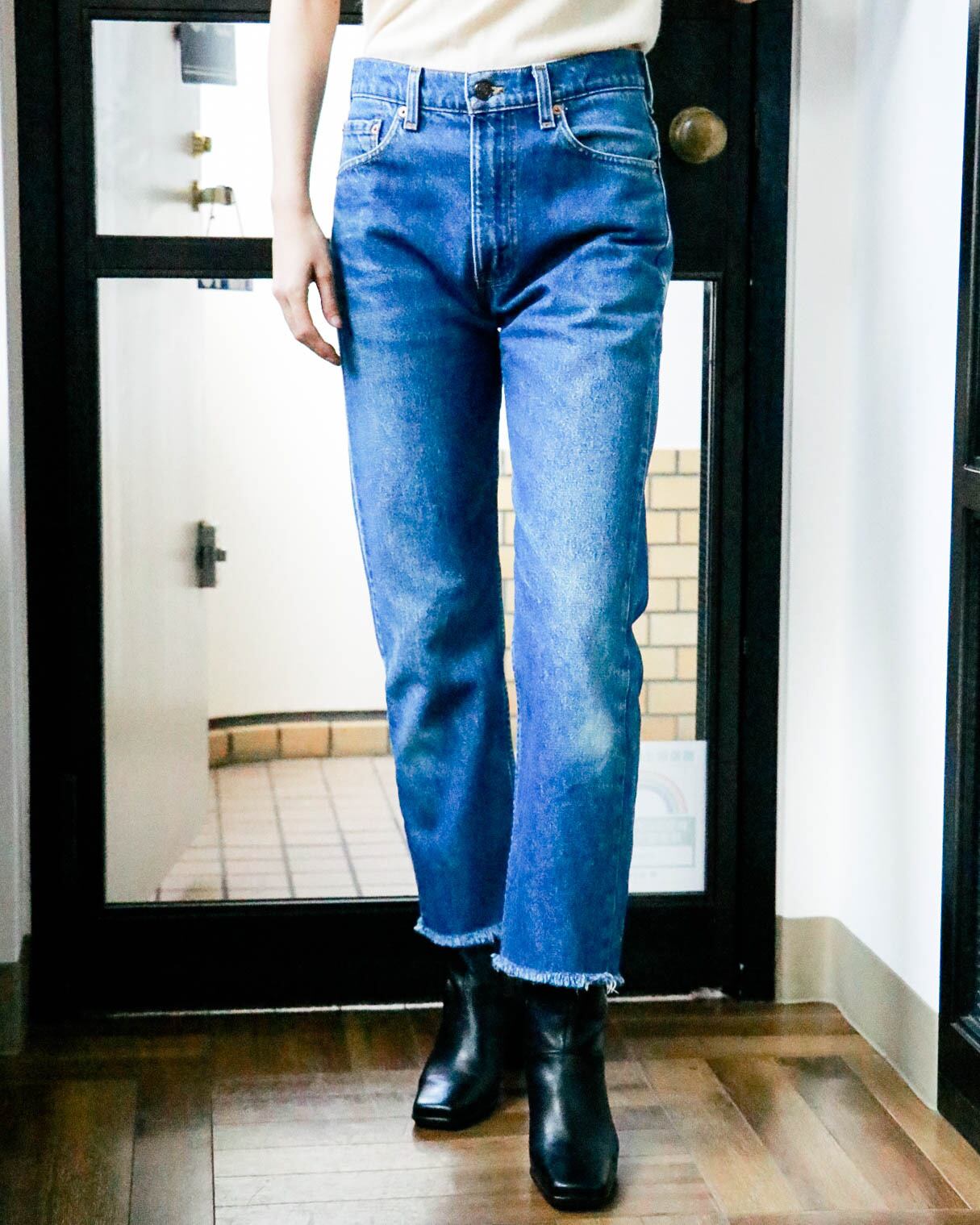 リーバイスといえばジーンズの原点と言える501の印象が強いですが、元が作業着として作られた501とは別にファッション向けに改良された505もお勧め。