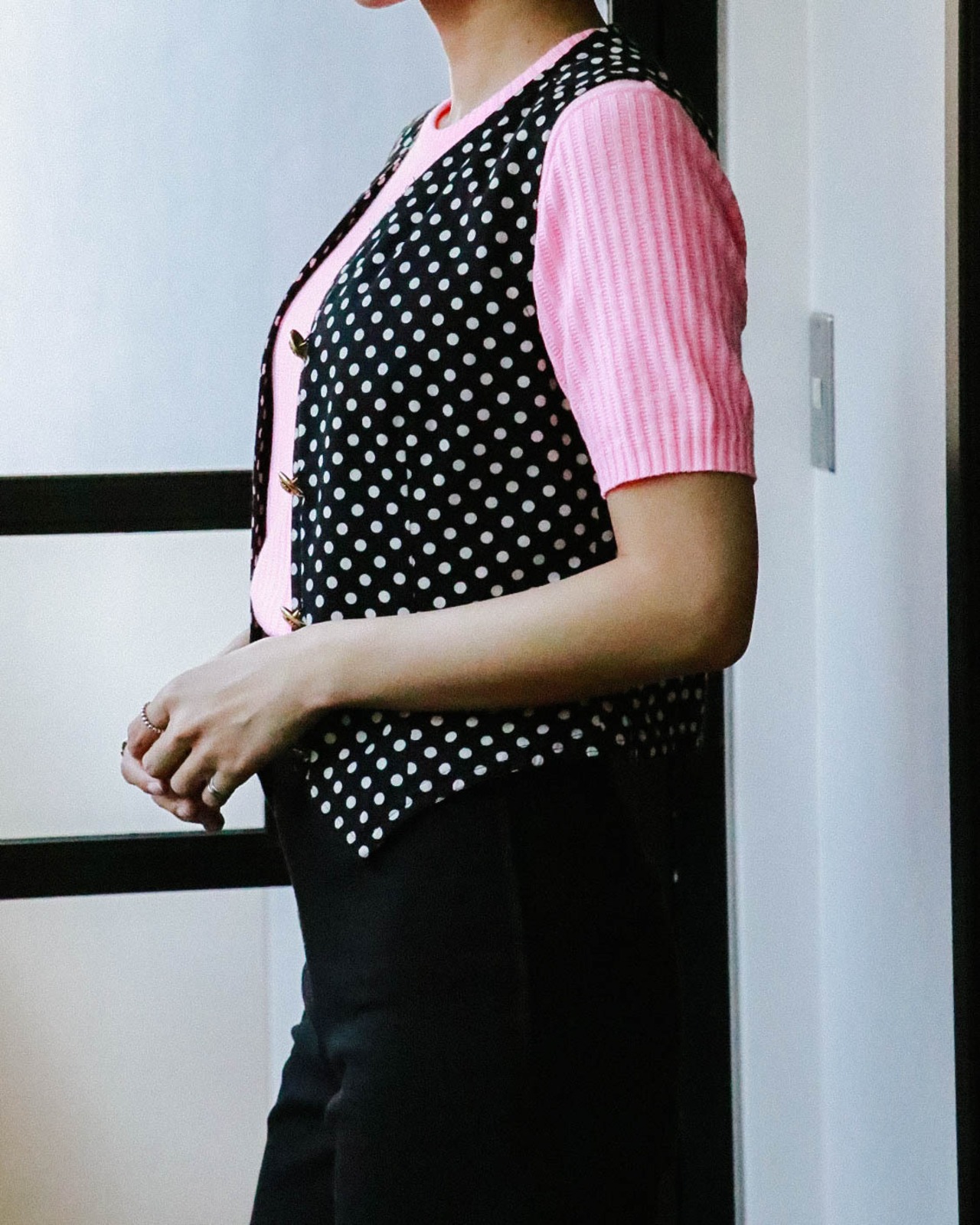 春夏の永遠の定番、ドット柄。こちらは、VERSACEのベストです。