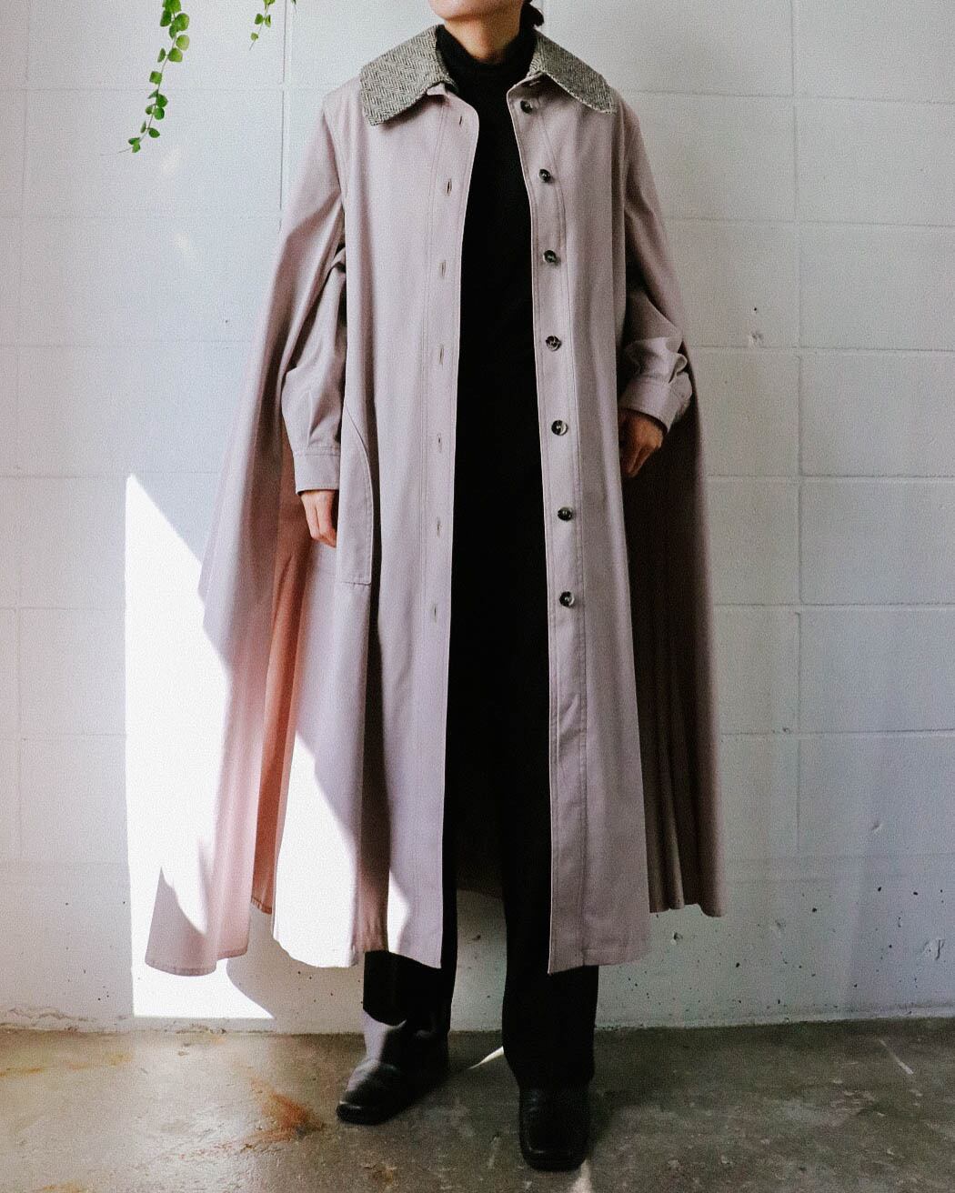 こんなに渋くてかわいいマントコートは中々出会えません。