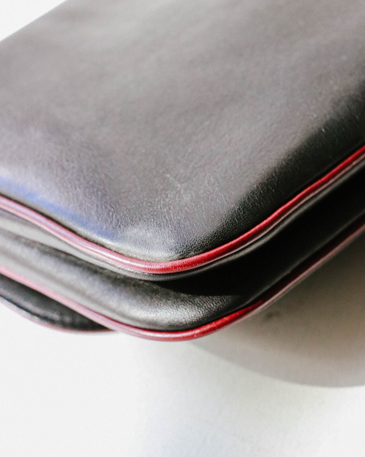 パイピングされたレッドとブラックのコントラストが優美で、クラシカルな印象。