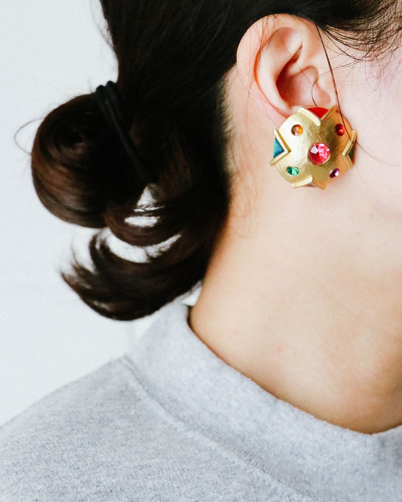 カラフルストーンと立体的なフォルムが愛らしく、顔まわりを華やかに見せてくれます。
