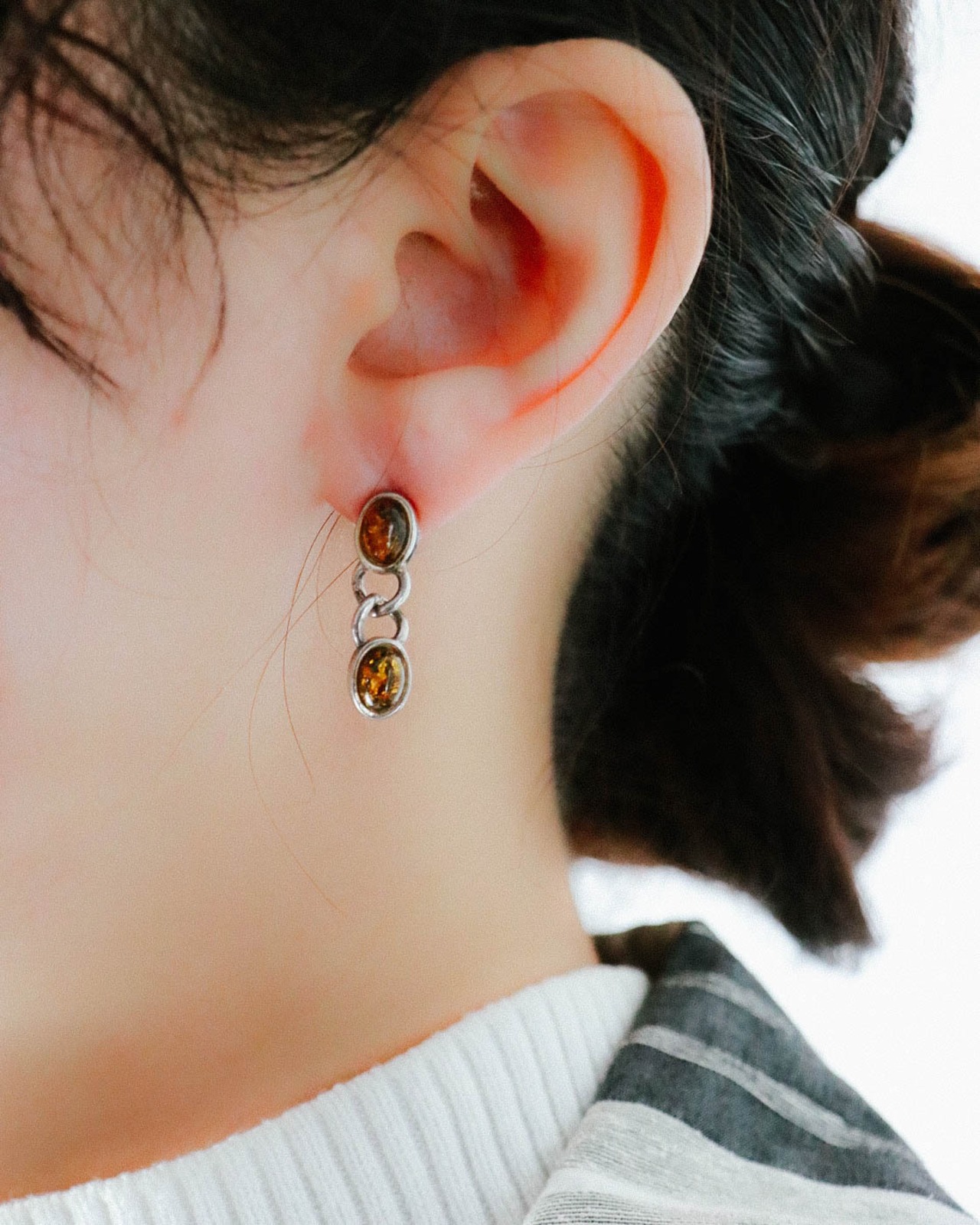 こちらはヴィンテージシルバーならではの落ち着きのある雰囲気と奥行きを感じさせるピアスです。