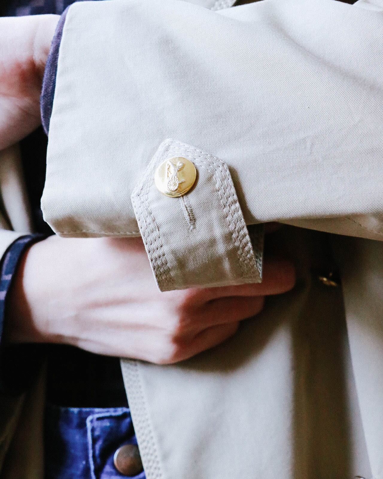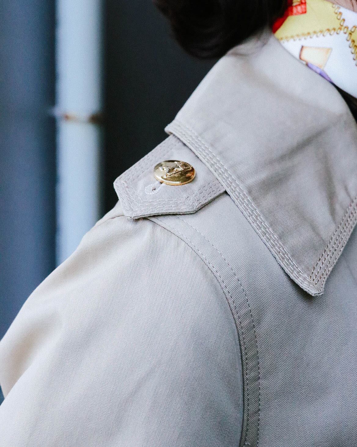 トラディショナルなディテールに馬車ロゴのボタンがよく映え、知的でエレガントなオーラを放ちます。