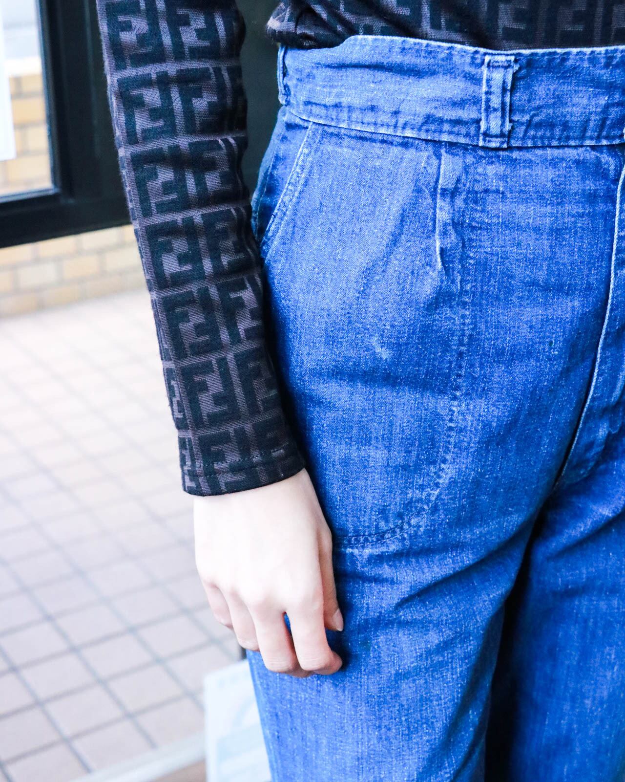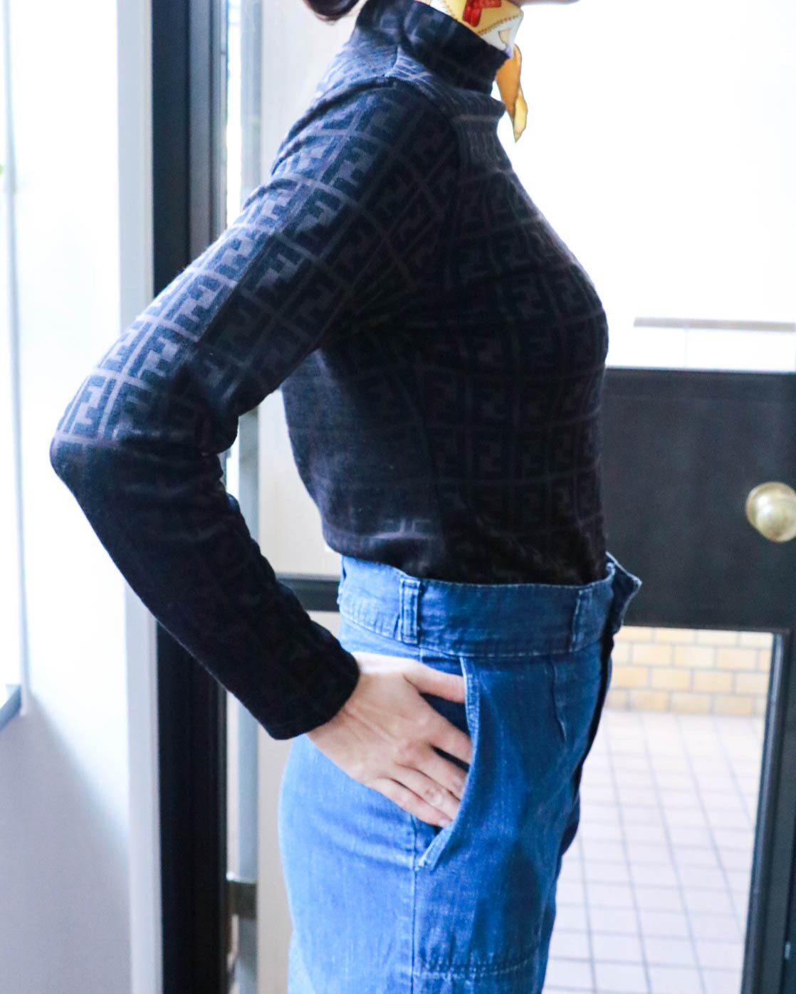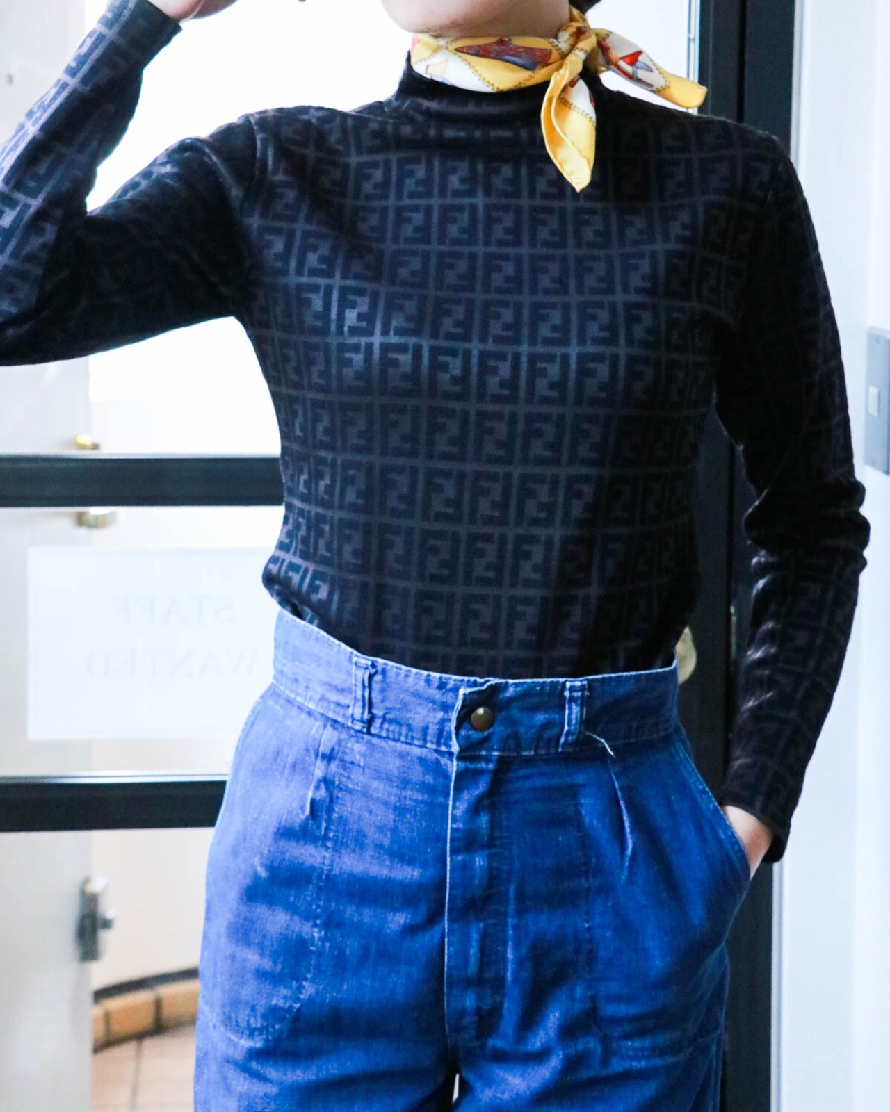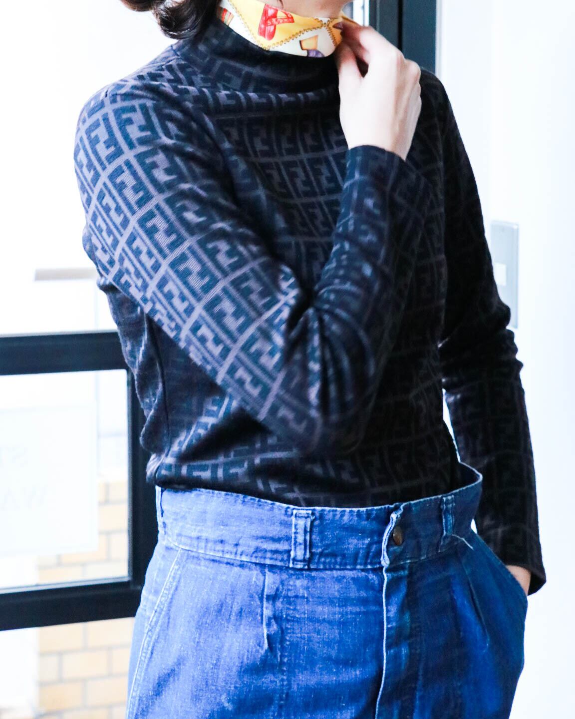 オールブラックがシックな印象のフェンディズッカ柄トップス。
