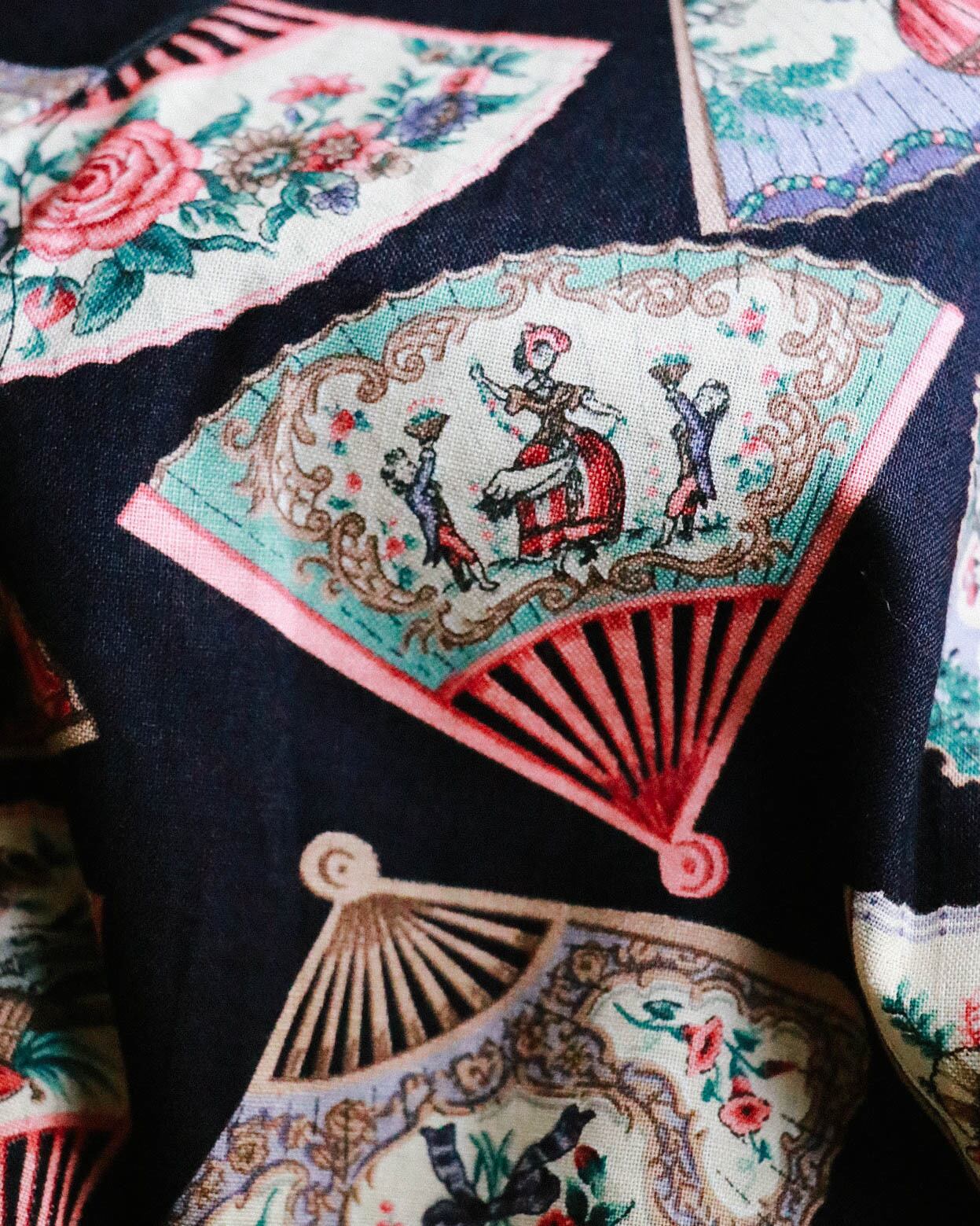 黒ベースに扇子の模様がとっても可愛いチャイナブラウス