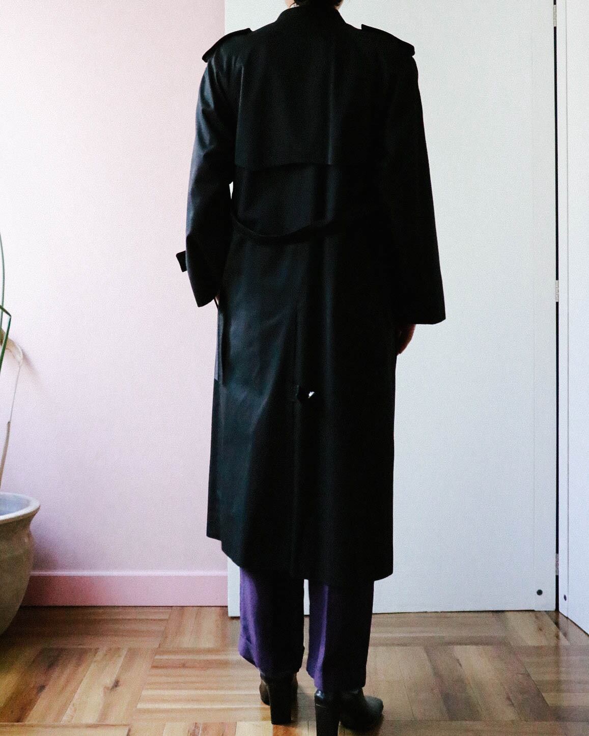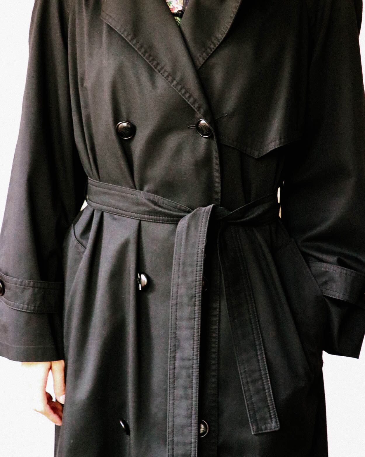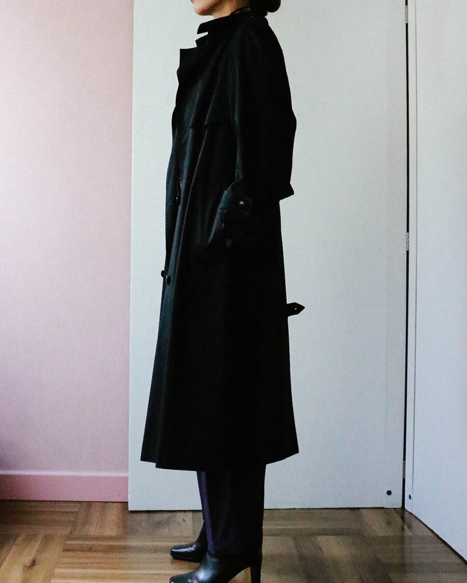 ガンフラップやエポーレットなど実践用に機能していたパーツは不要の時代。それでもファションに昇華した今尚そのディテールに敬意を払った正統派なデザインのトレンチコート。こちらはトレンチには珍しいブラックカラー。かっこよさがぐっと際立つ一着です。