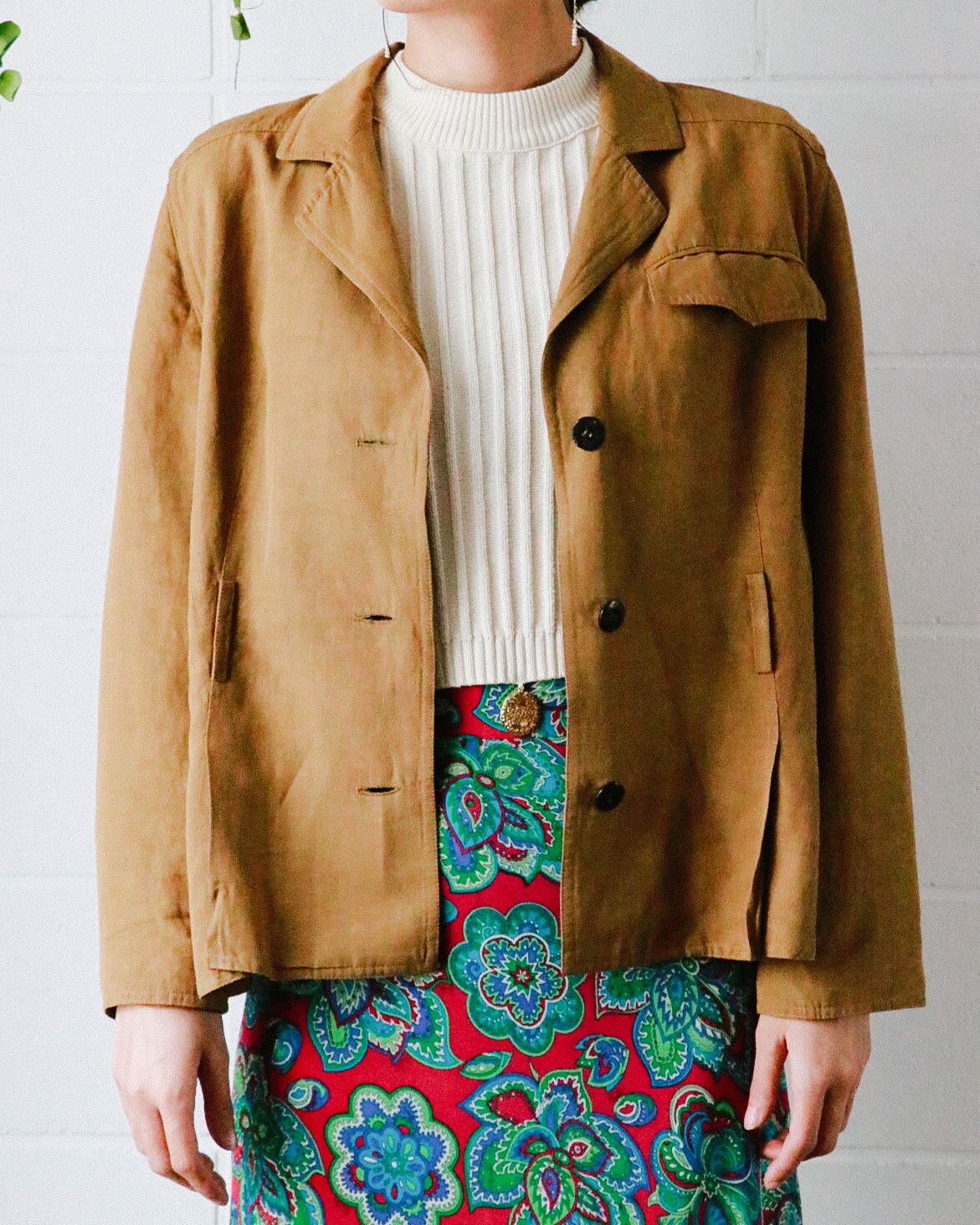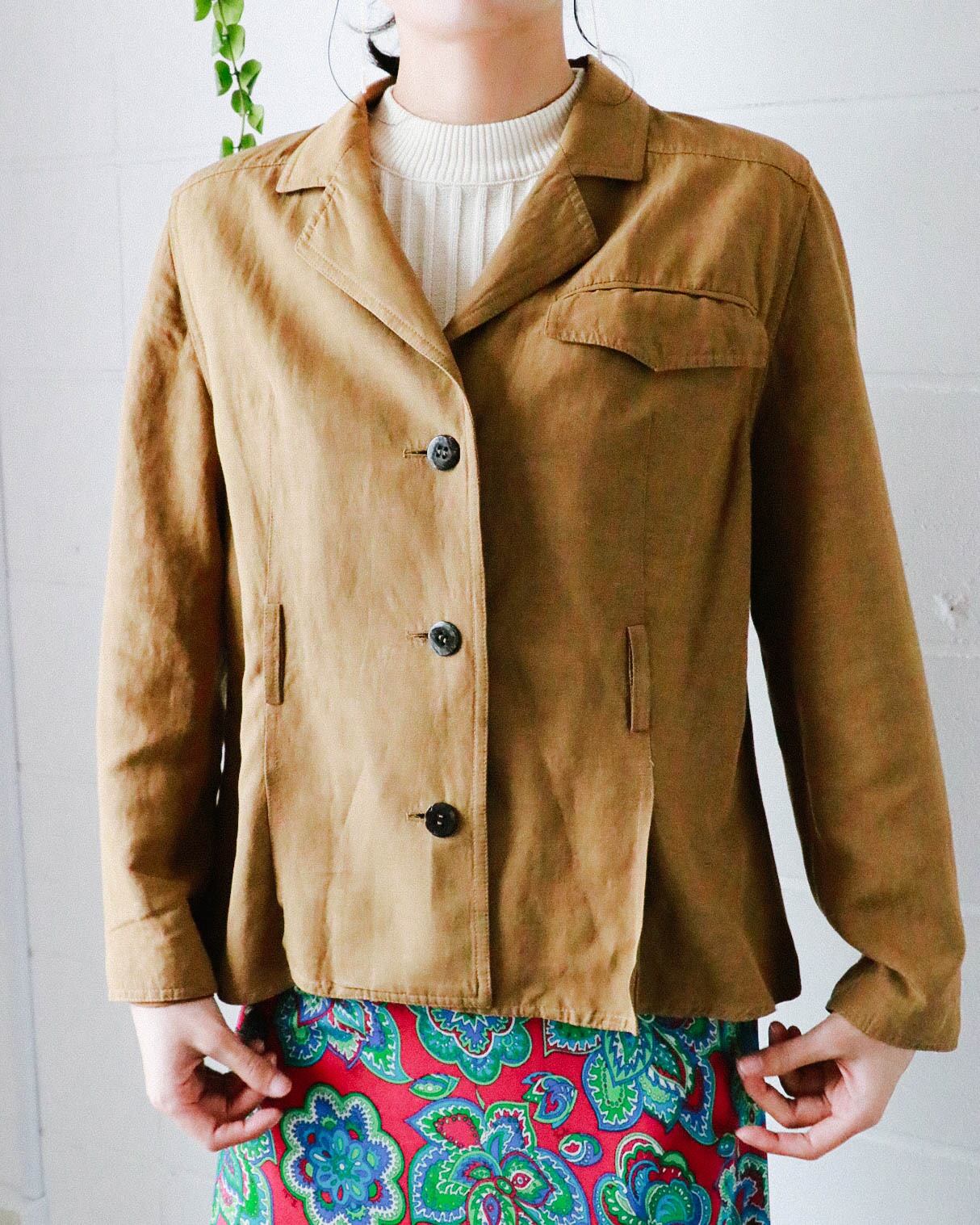 サファリ風な見た目が良い感じのジャケットは、オウカー色で合わせやすい。