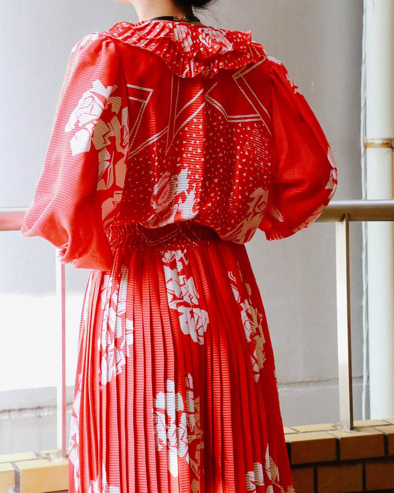 80s red × white frill dress