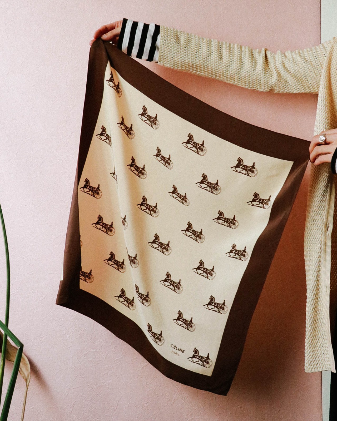 セリーヌを代表する馬モチーフのシルクスカーフ。