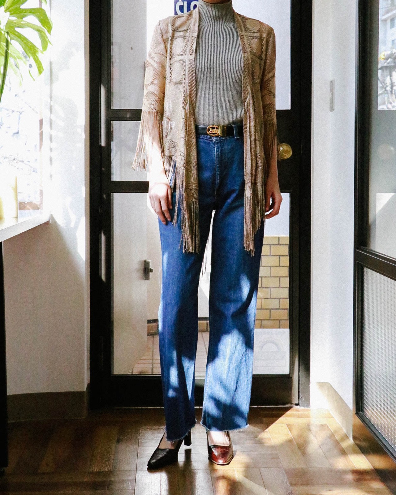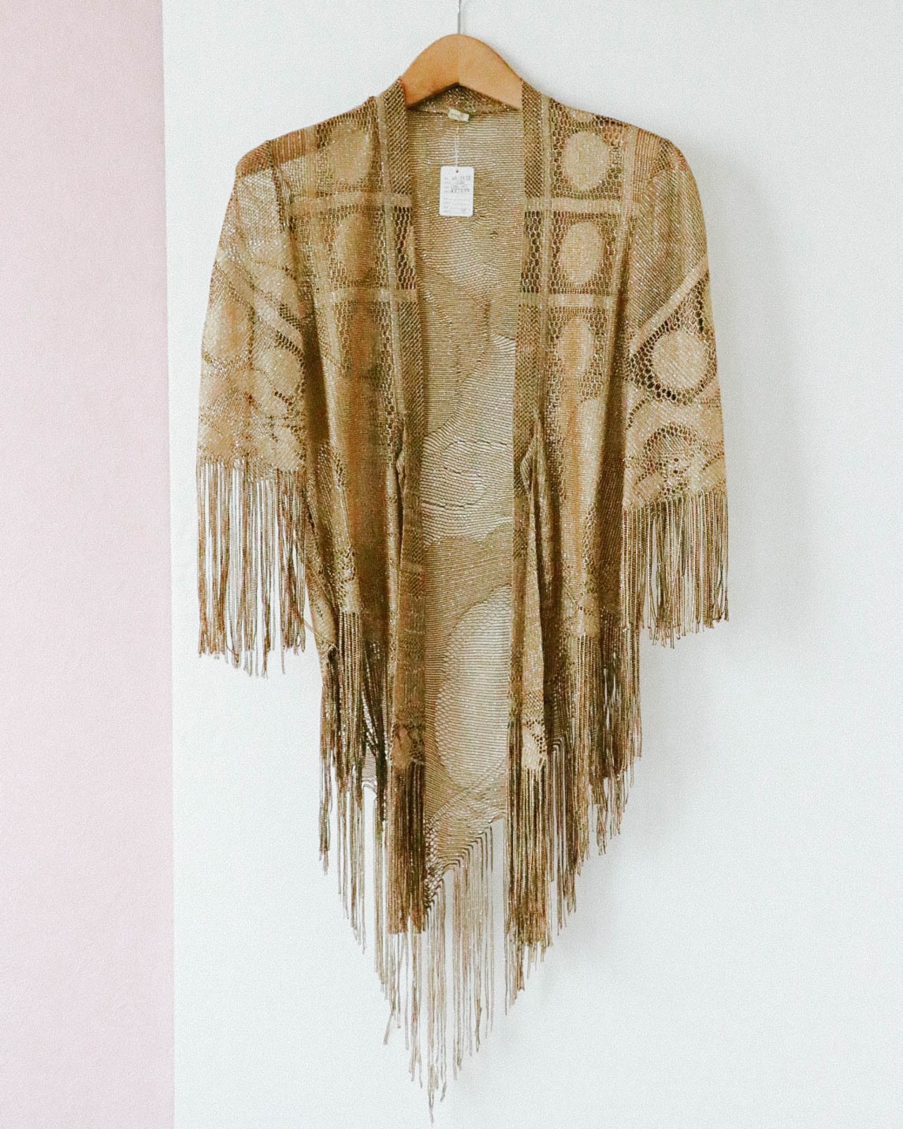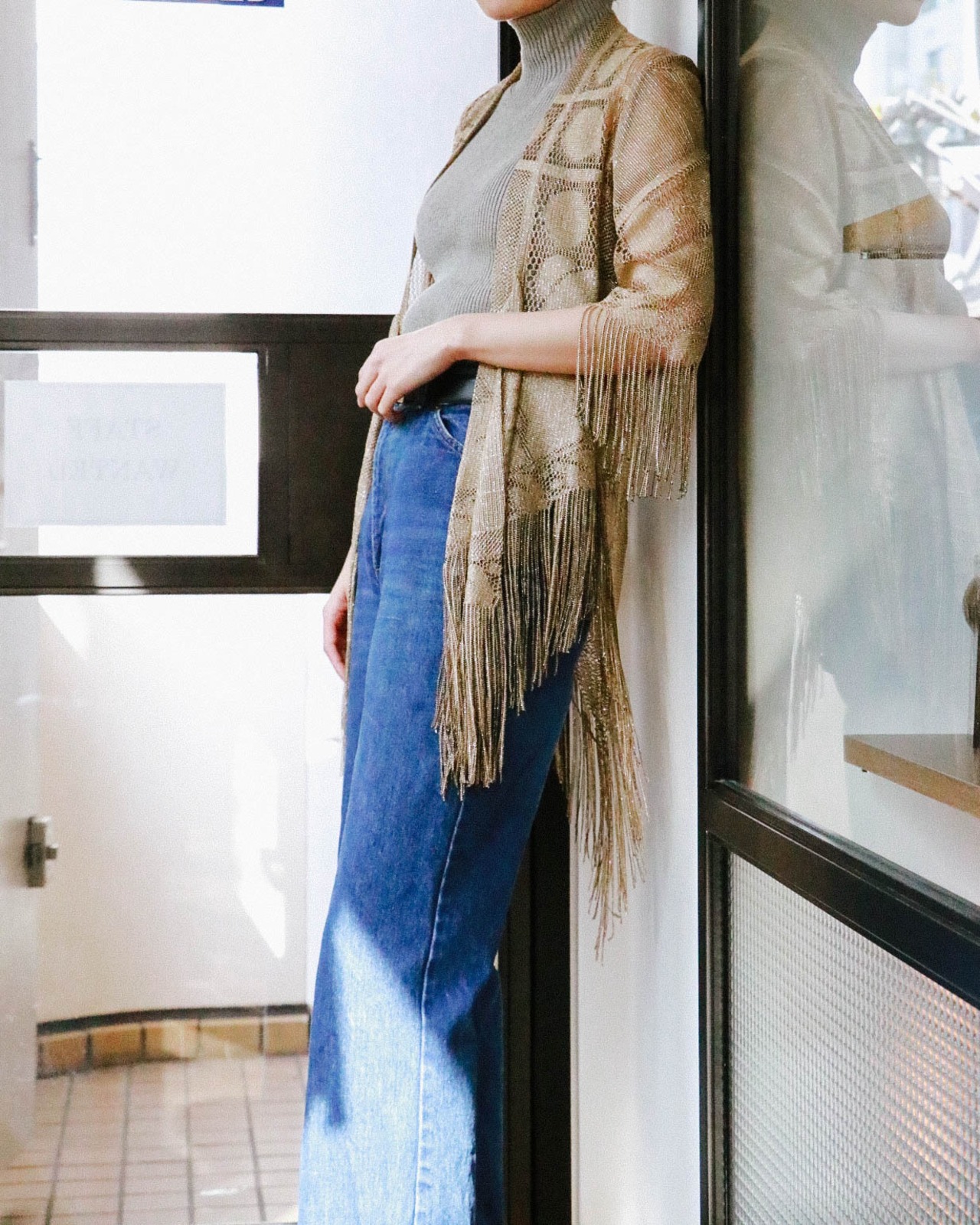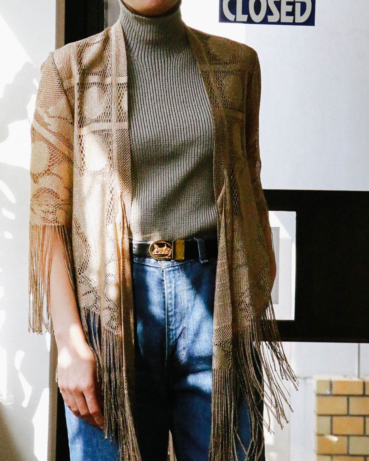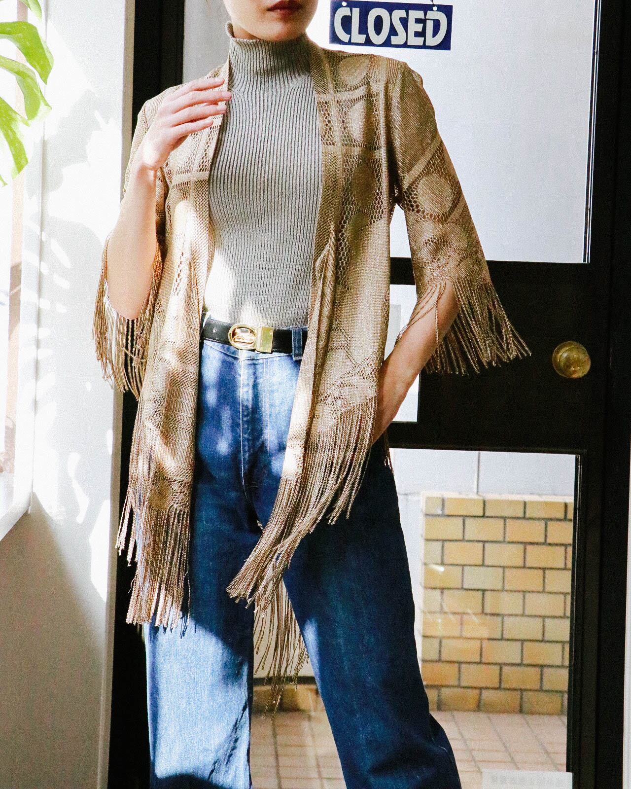 どんなコーディネートにでもムードを盛り上げてくれる70年代のゴールドフリンジ羽織り