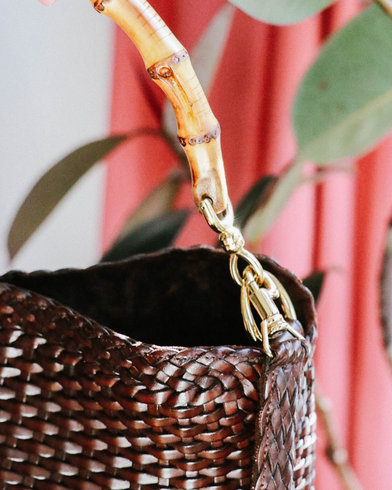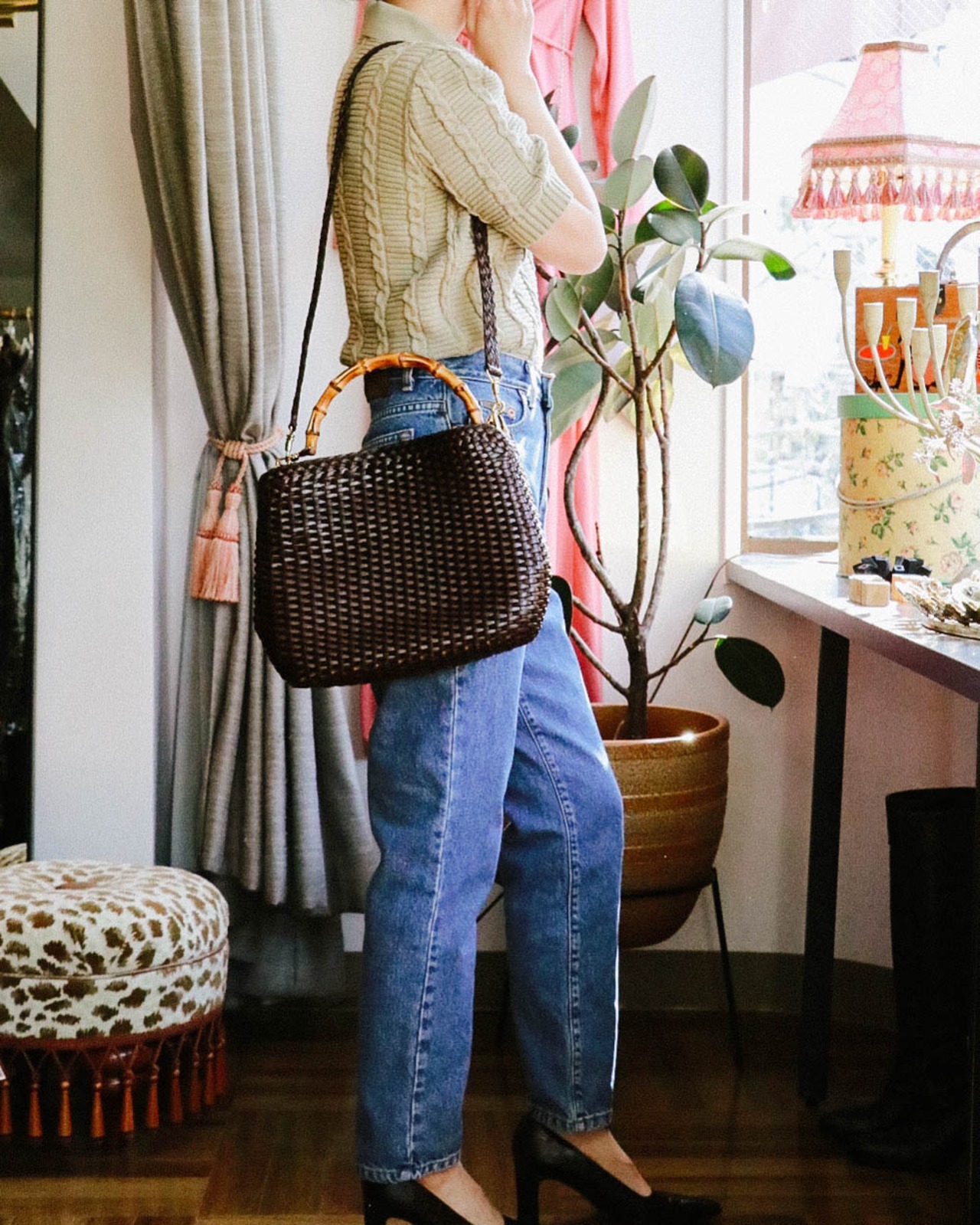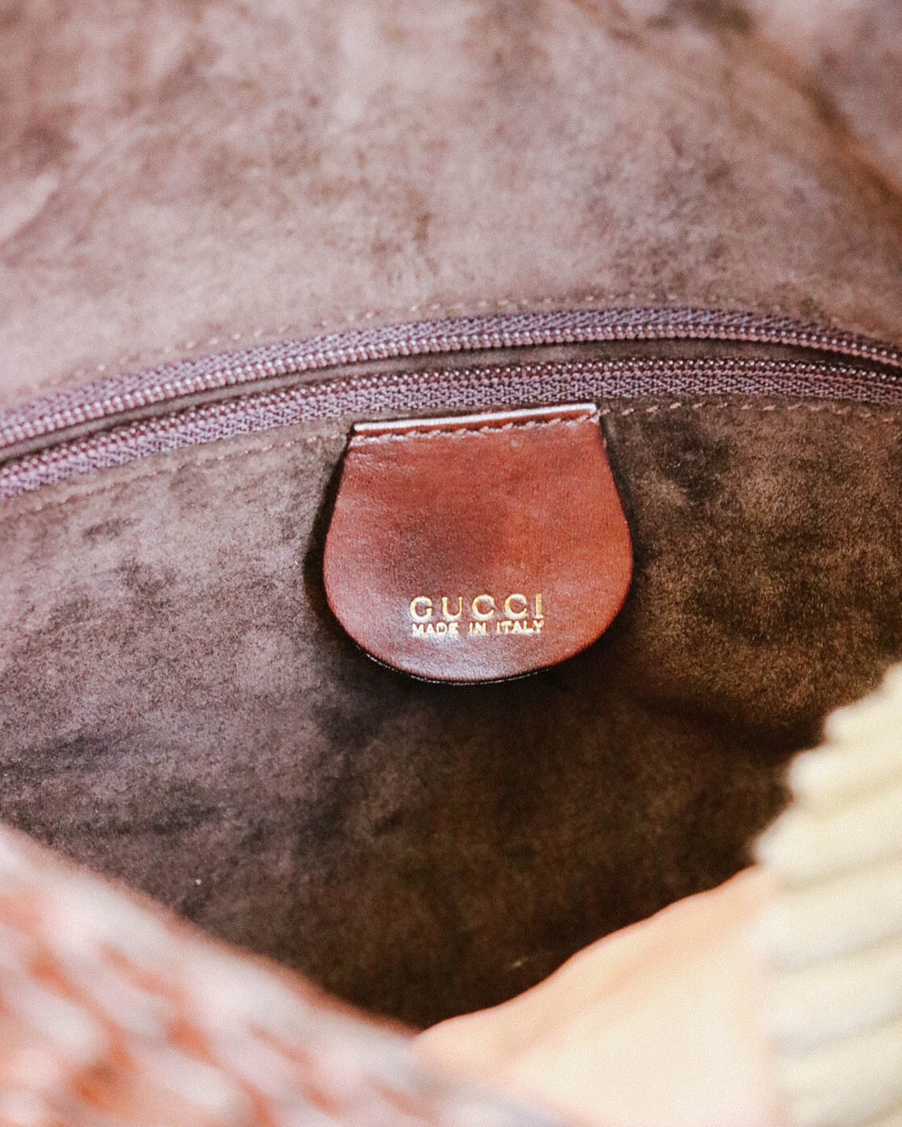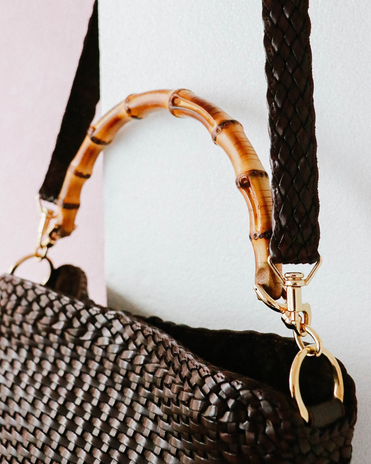 グッチの象徴的なバンブーハンドルがラフなブレードをエレガントに昇華。
