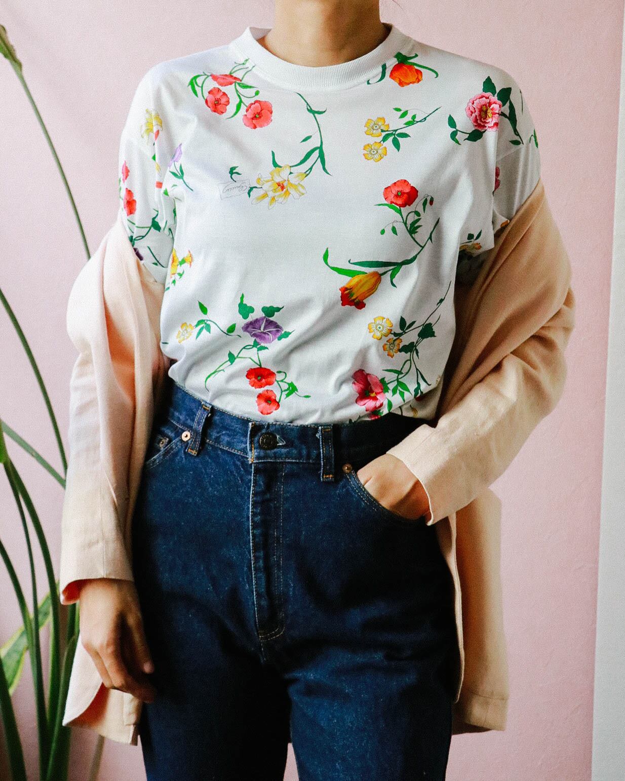 70年〜80年代のグッチの代表作でもあるフローラシリーズ。大女優グレース・ケリーのために発注したものが起源となる花をメインにした細密画で四季を織り込んだラインです。