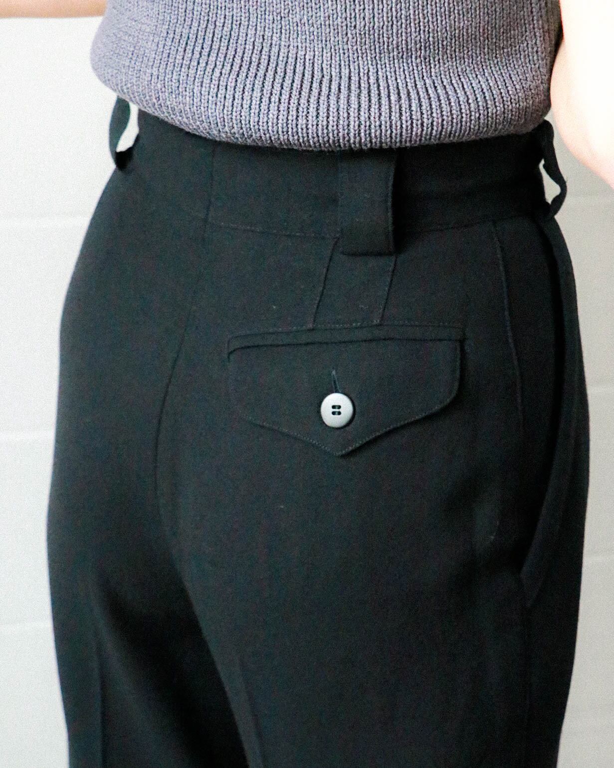 ハイウエスト×センタープレスの王道デザインで、美しいレッグラインが仕上がります。