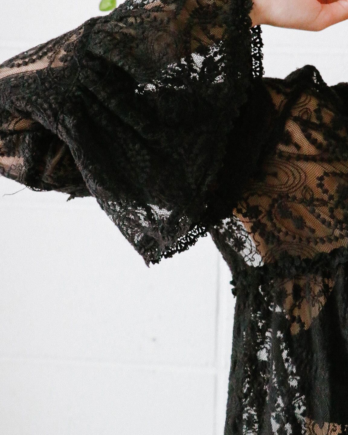 80s black lace tunic tops