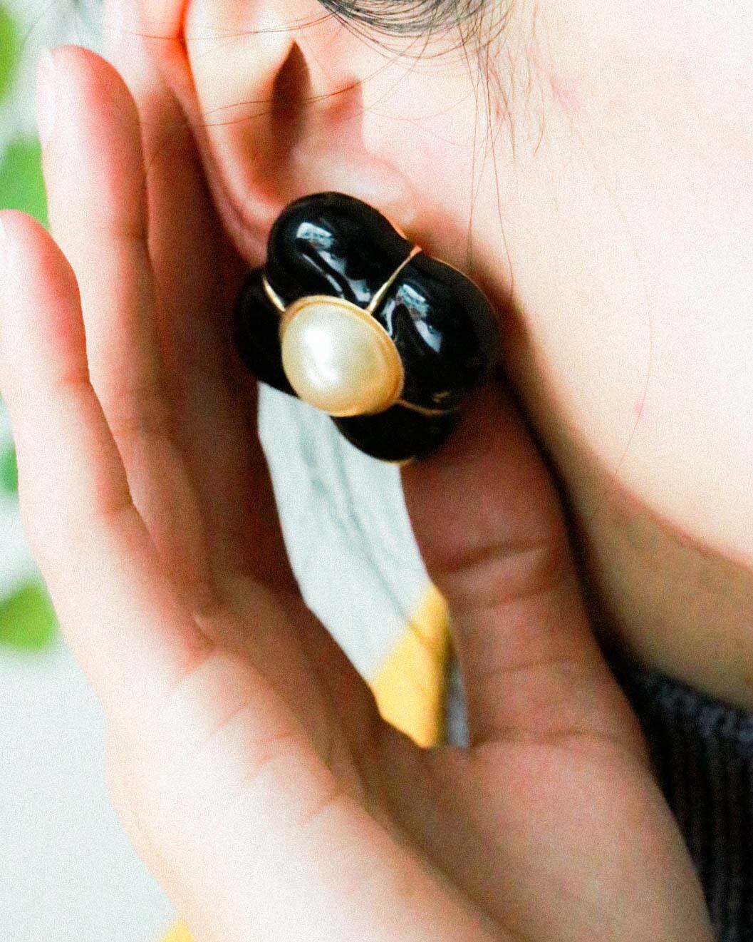 大ぶりなボリュームのあるイヤリングで顔まわりを華やかにみせてくれます。