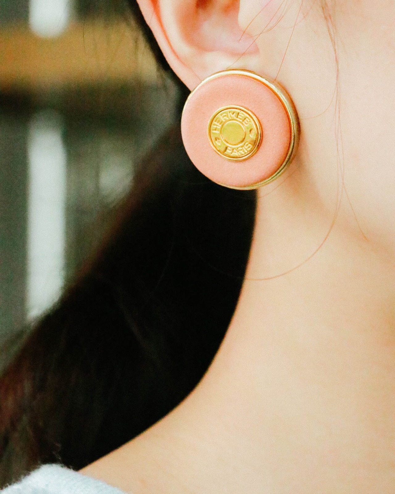 愛らしいピンクレザーにキュンとするエルメスのヴィンテージイヤリング。