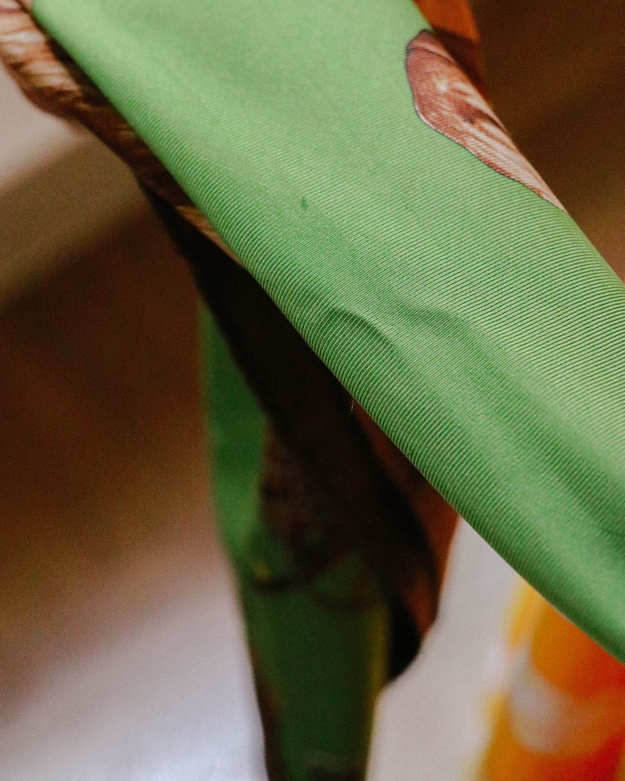 巻き方で柄の出る部分が変わるのもスカーフが楽しめる理由のひとつ。
