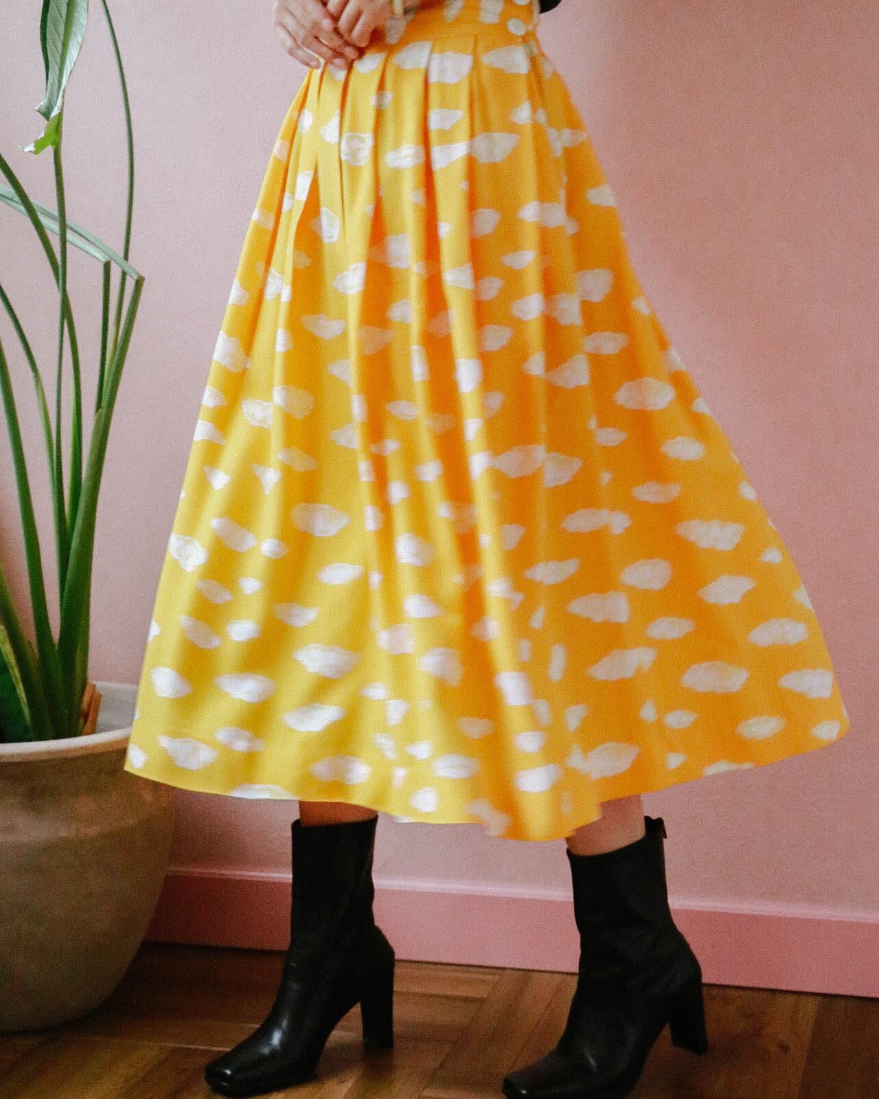 雲が散りばめられたパターンがかわいいプリーツスカートが入荷しました。