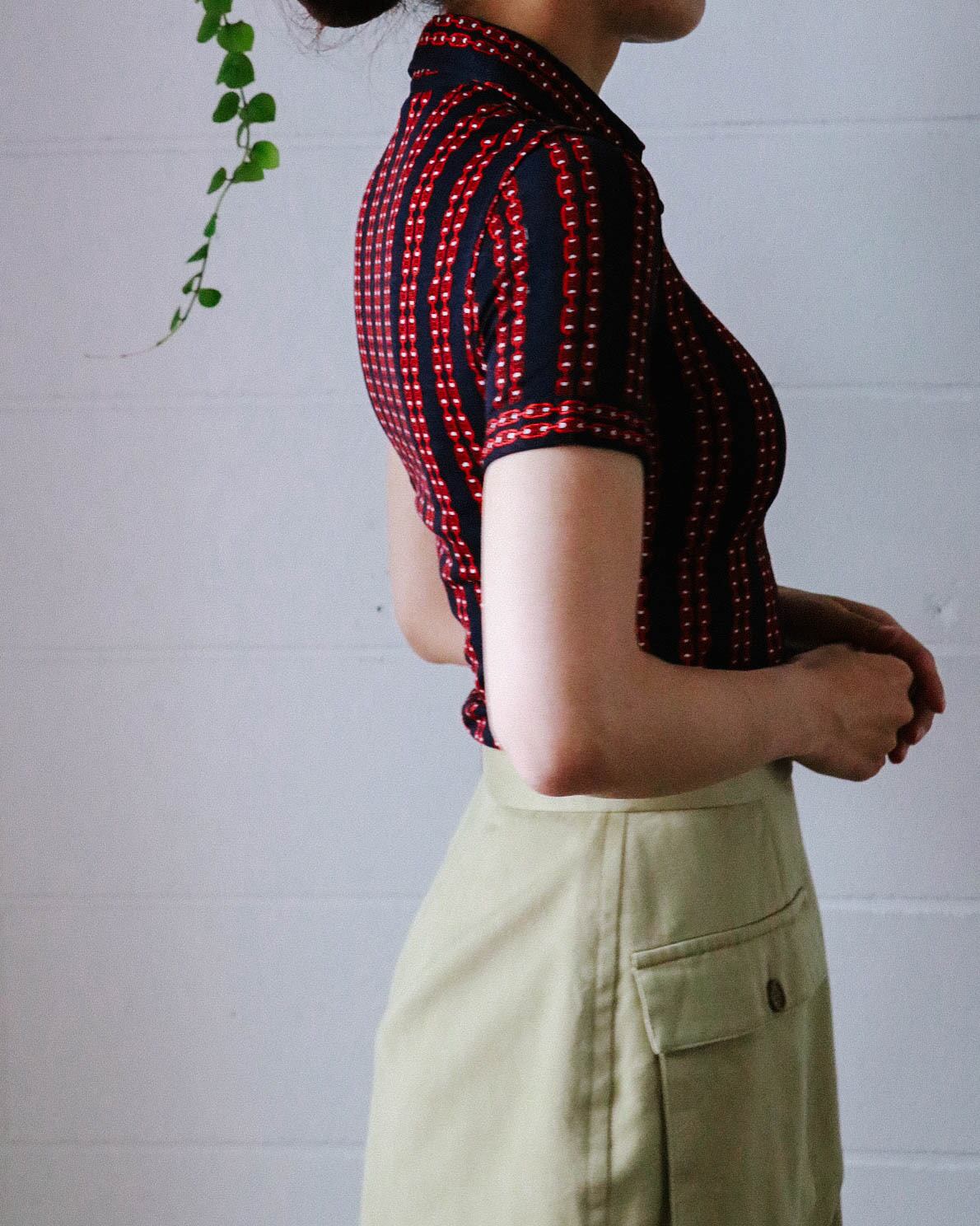コンパクトシルエットが今のムードにぴったりです。。パンツスタイルからきれいめスカートにインして夏コーデをお楽しみください。