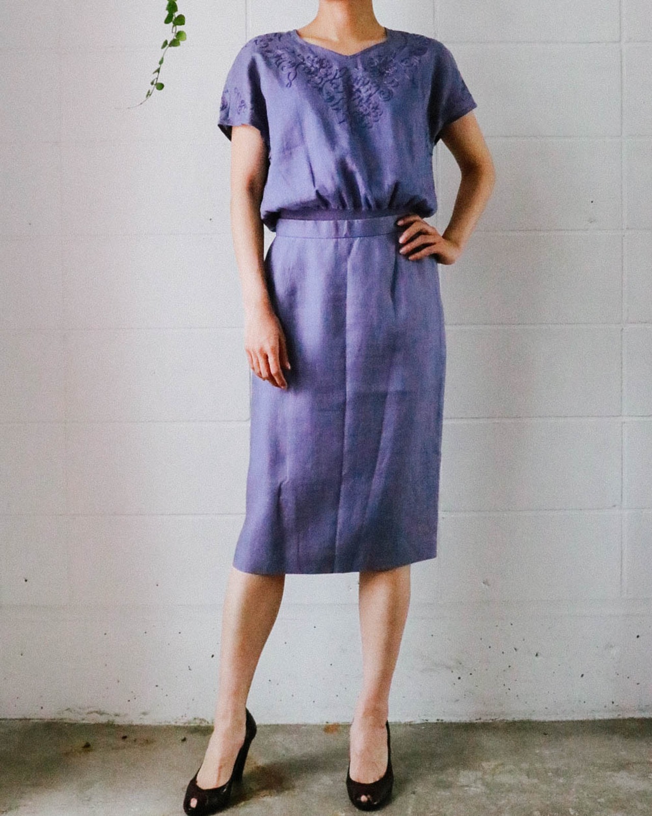 80s lavender linen skirt