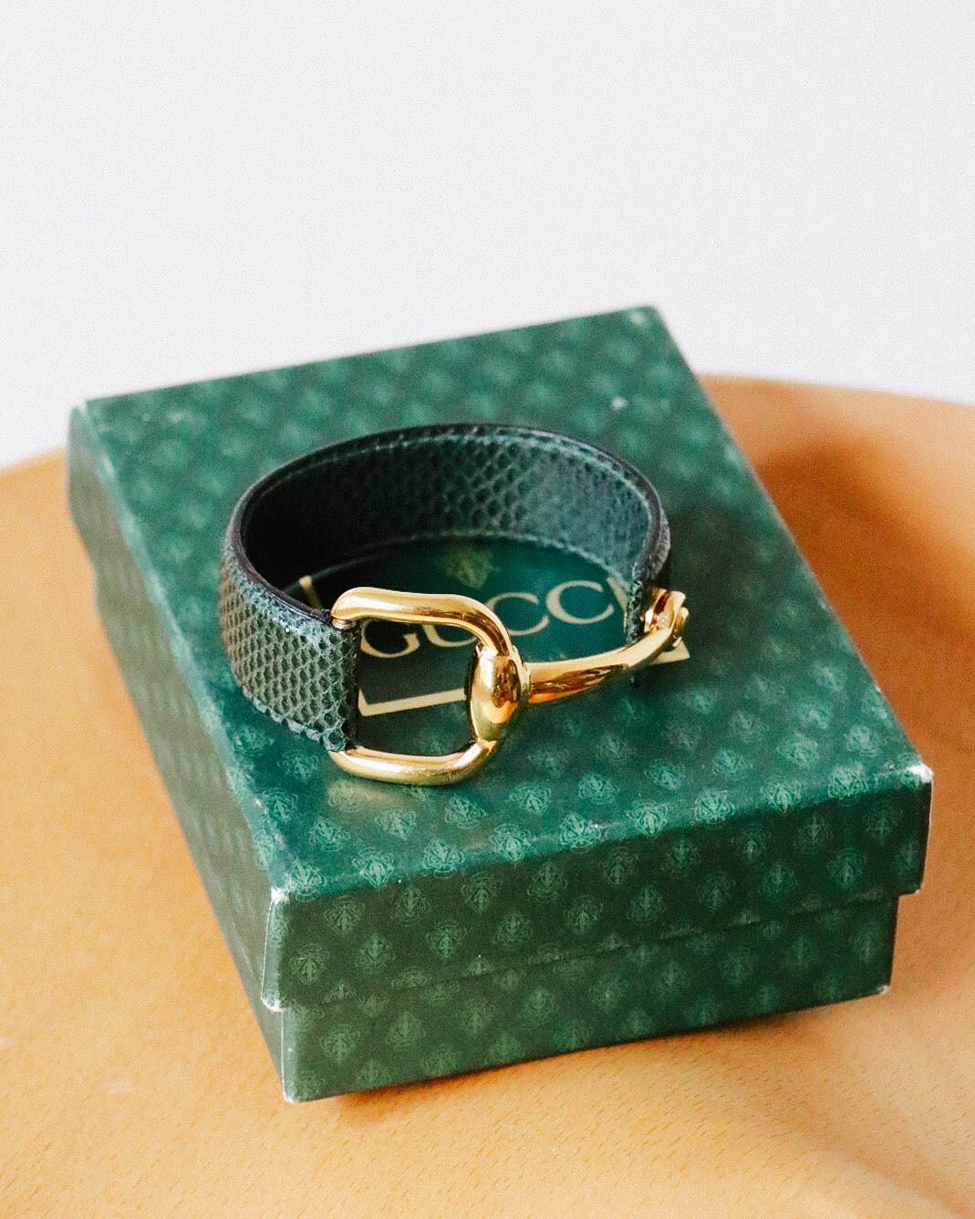 GUCCI green leather bangle