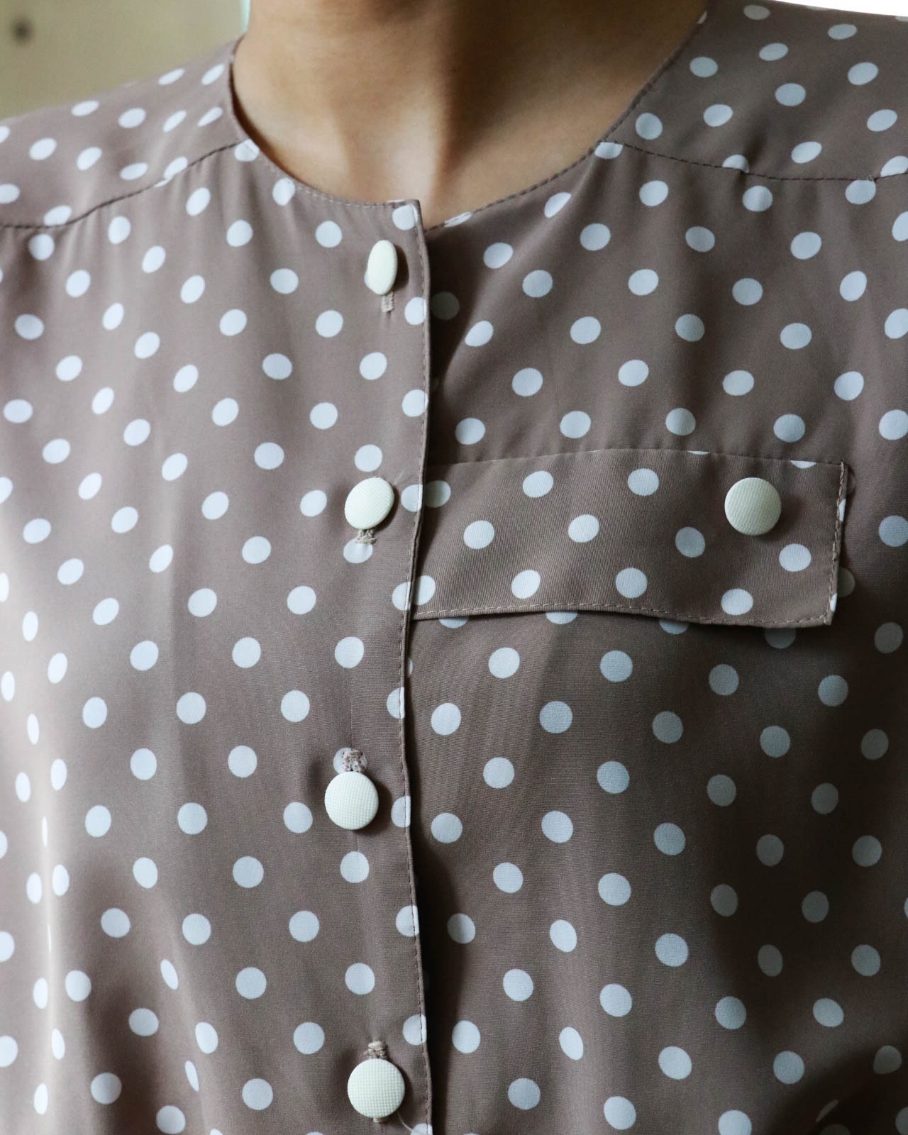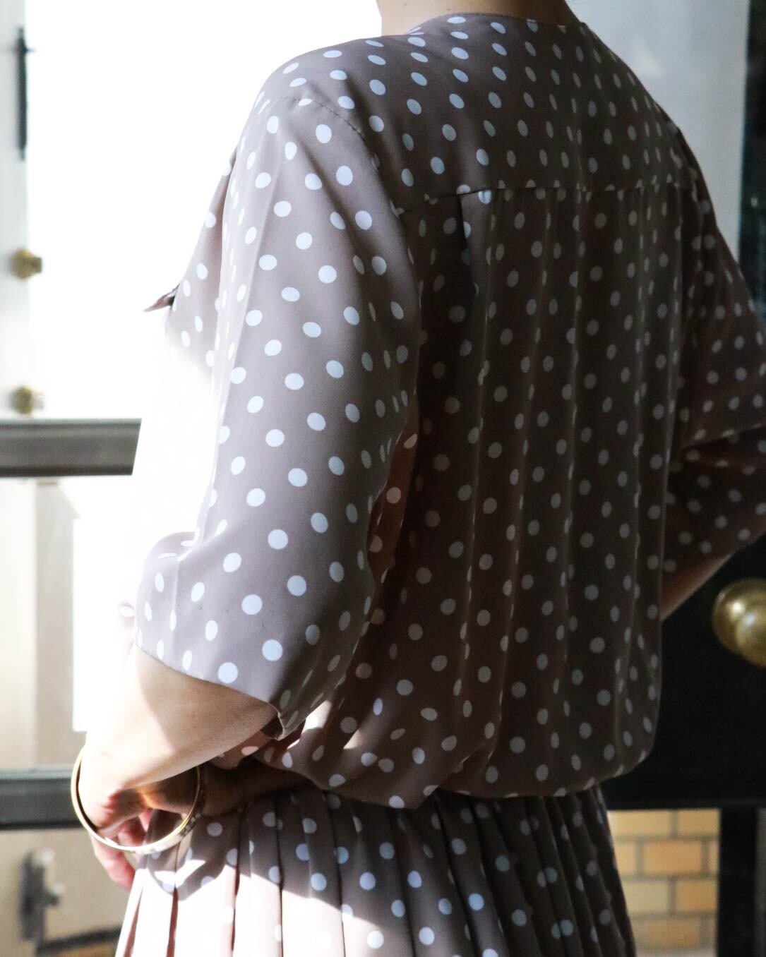 polka dot beige pleated dress
