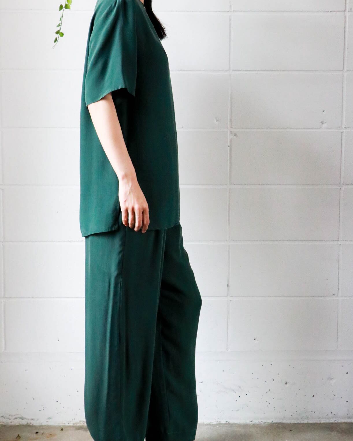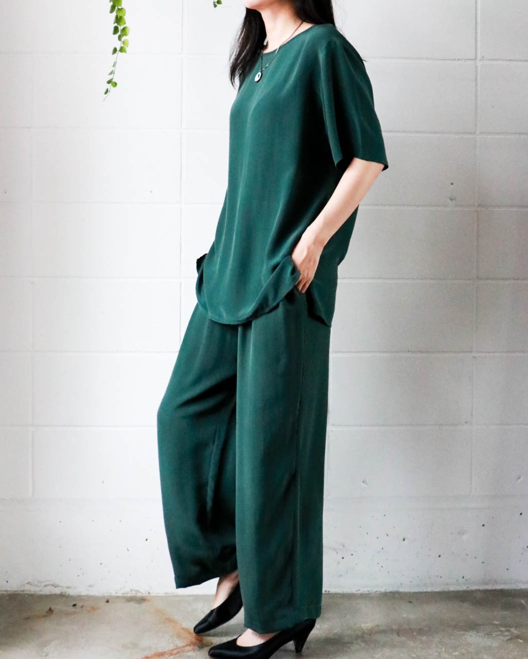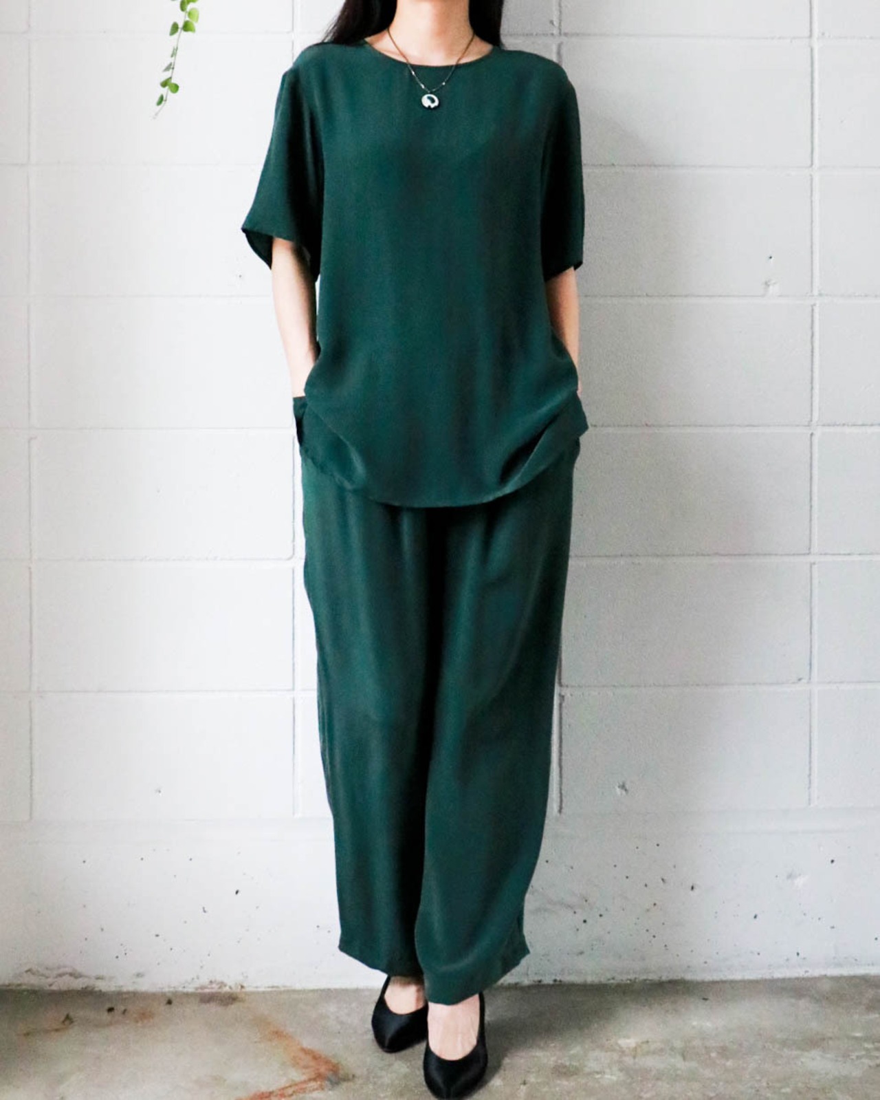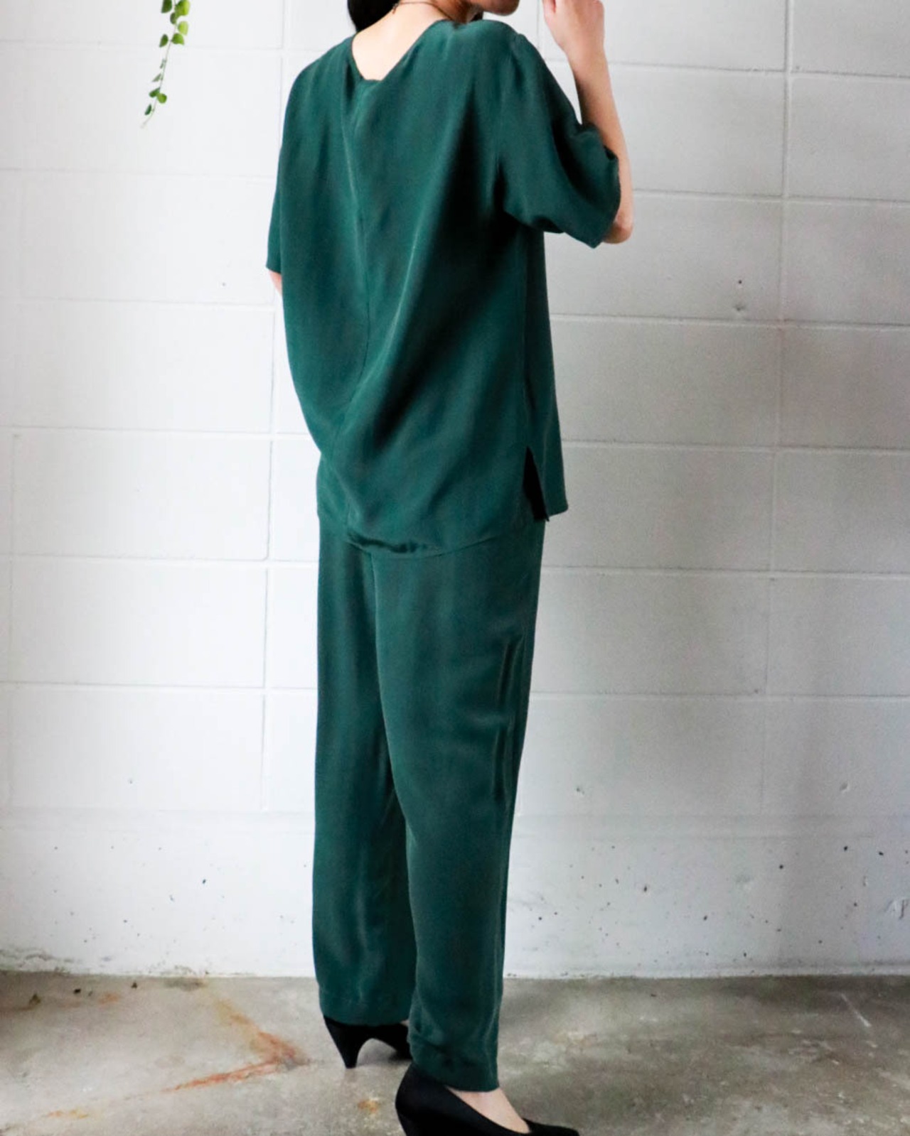 深みのあるグリーンがシルクによって光の加減で様々な表情をみせます。