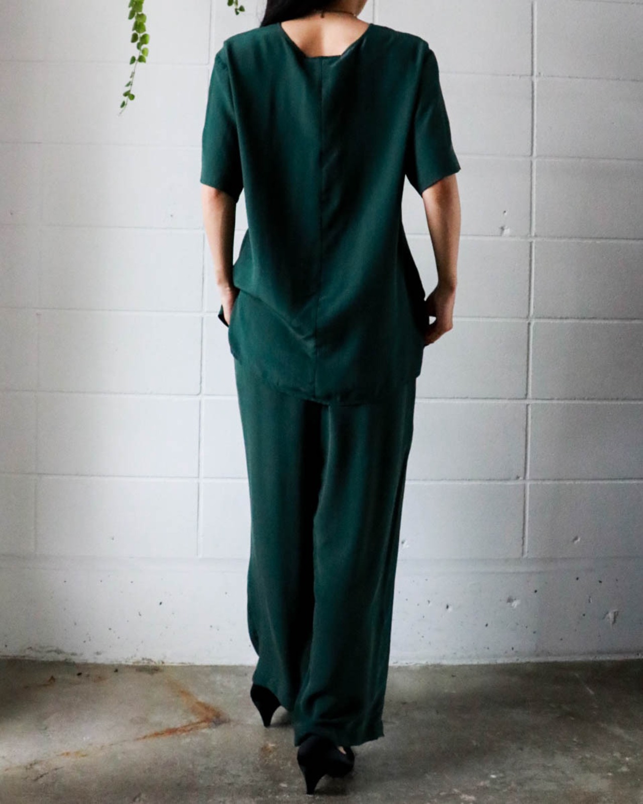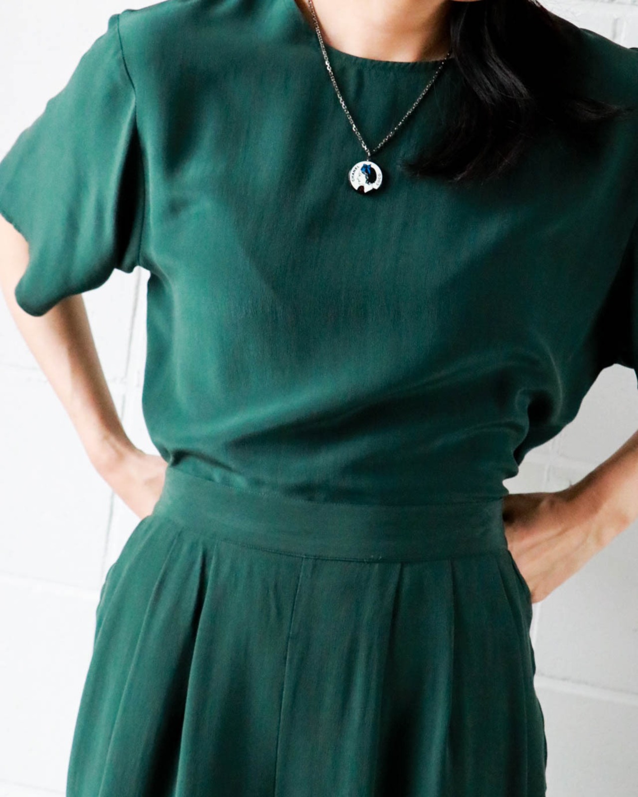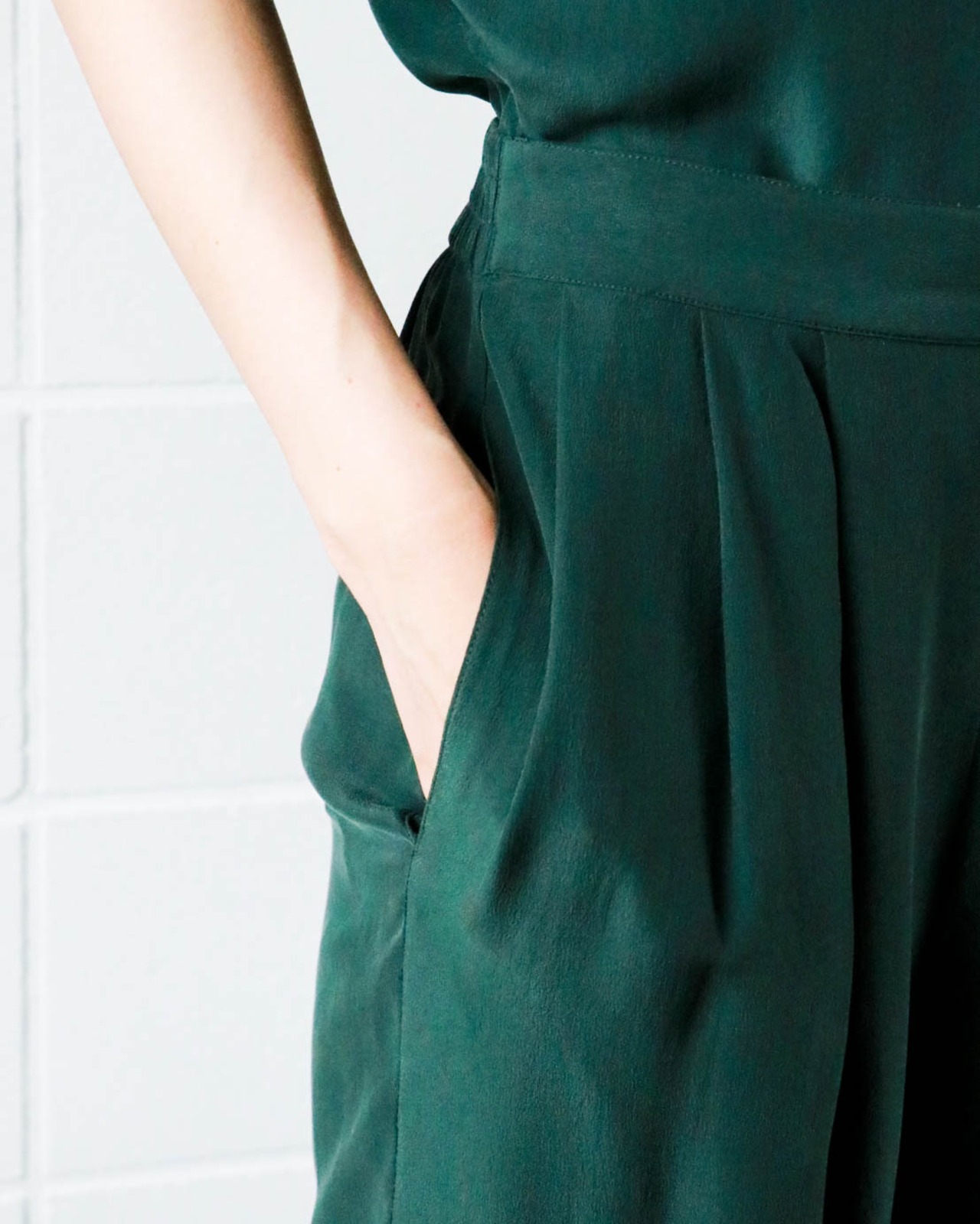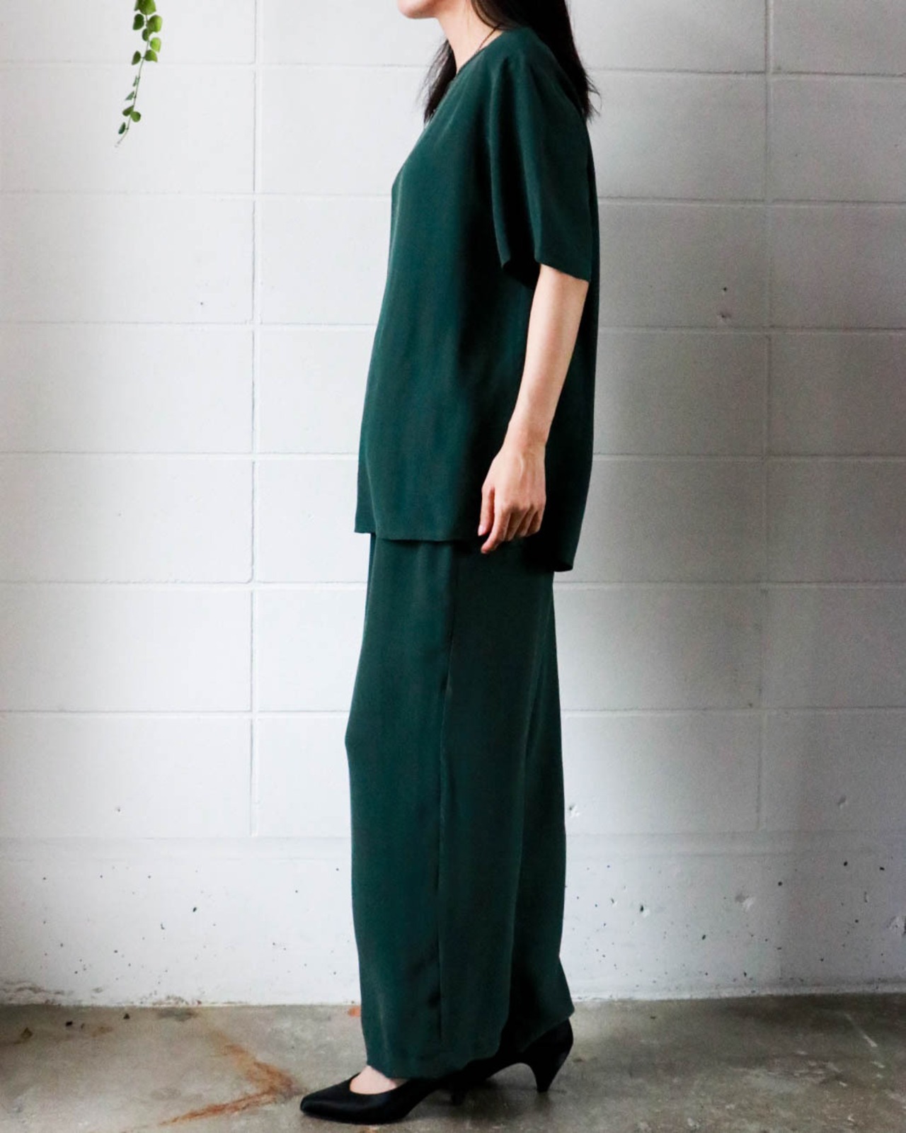 深みのあるグリーンがシルクによって光の加減で様々な表情をみせます。
