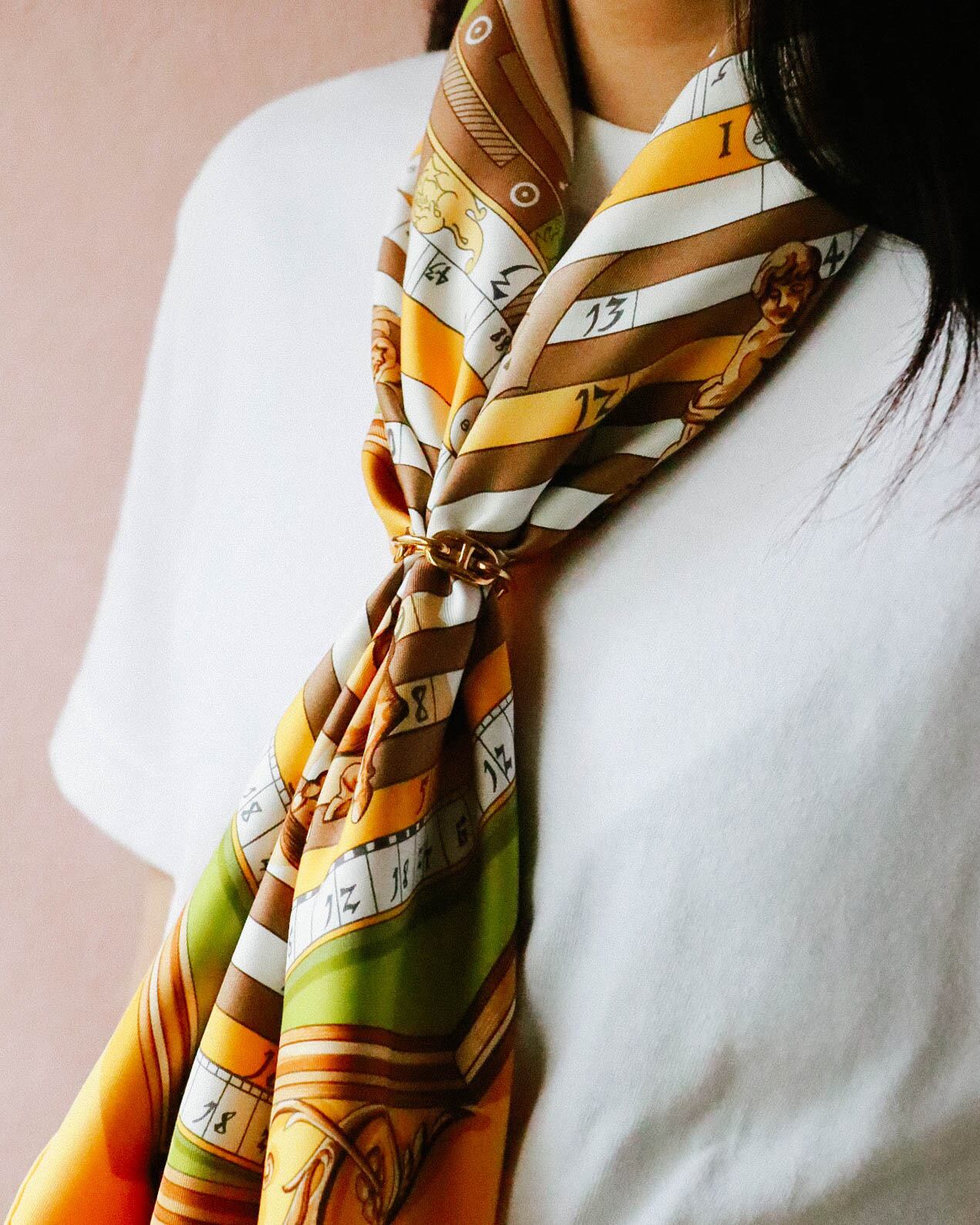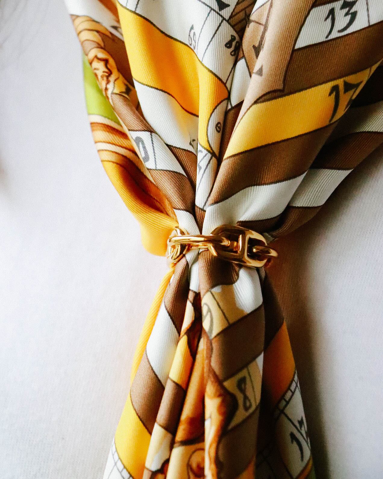 スカーフの印象を一目で変えてくれる上品なエルメス、シェーヌダンクルのスカーフリング。