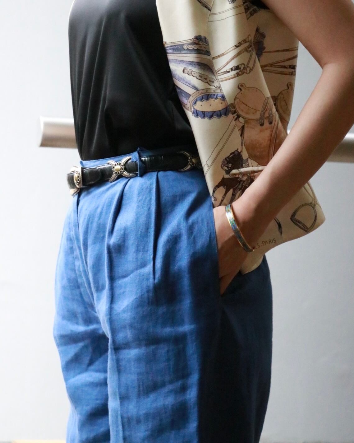 清涼感のあるブルーカラー!裏地があるため透ける心配もなく、きっちりとした印象を演出し蒸し暑い夏を涼やかに過ごせる一着。