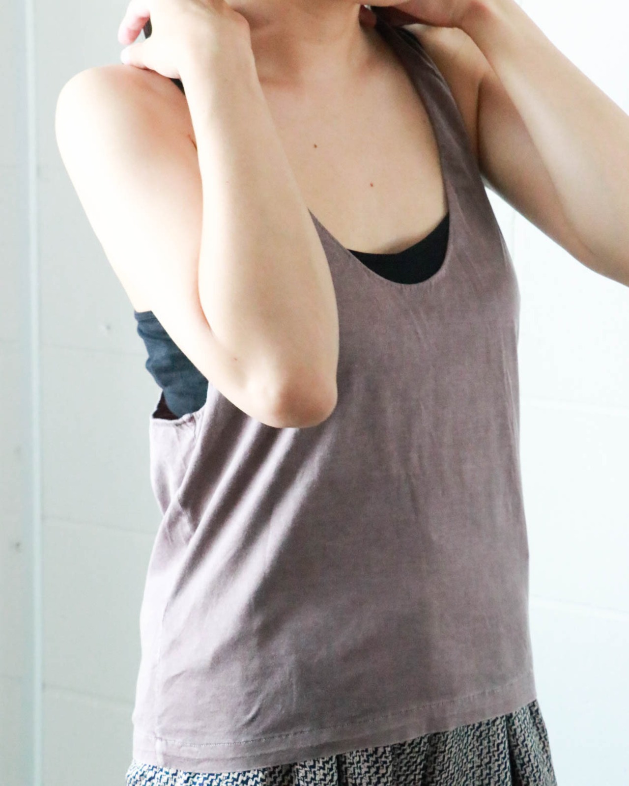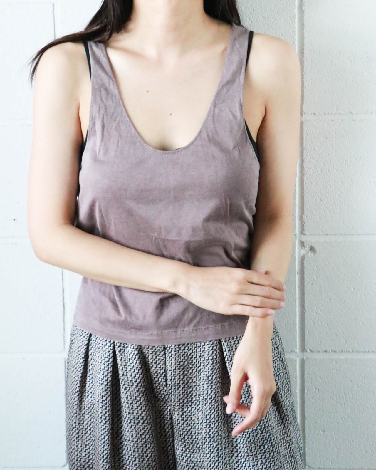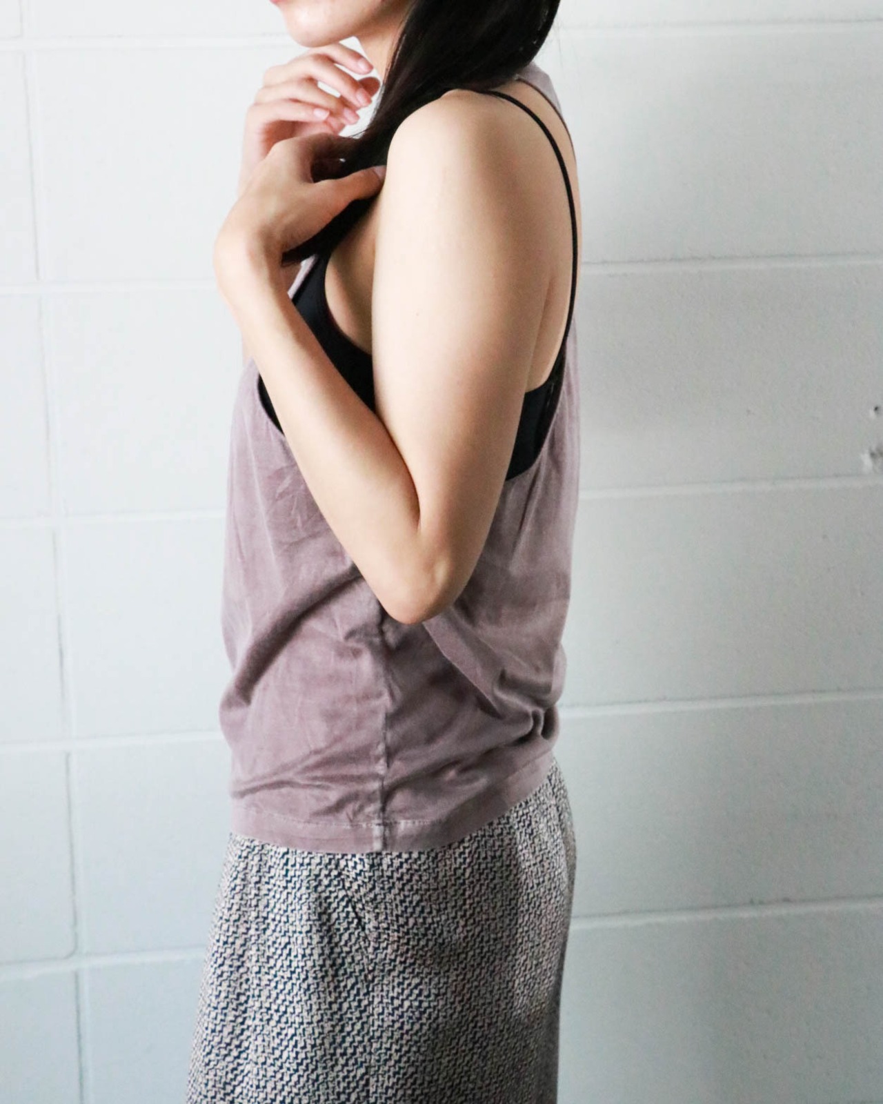 暑い日は見せブラで潔く、白いタンクトップやシアーな素材とレイヤードも楽しみたい。