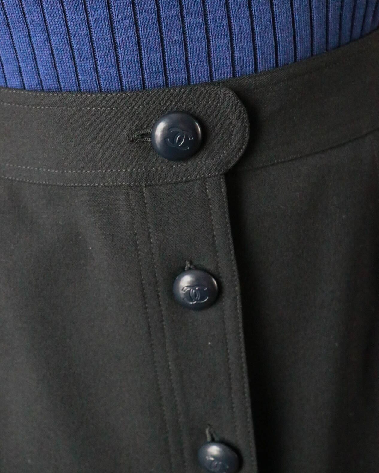 シャネルのスカートが入荷。羅列したフロントボタンが浮かび上がるデザイン。