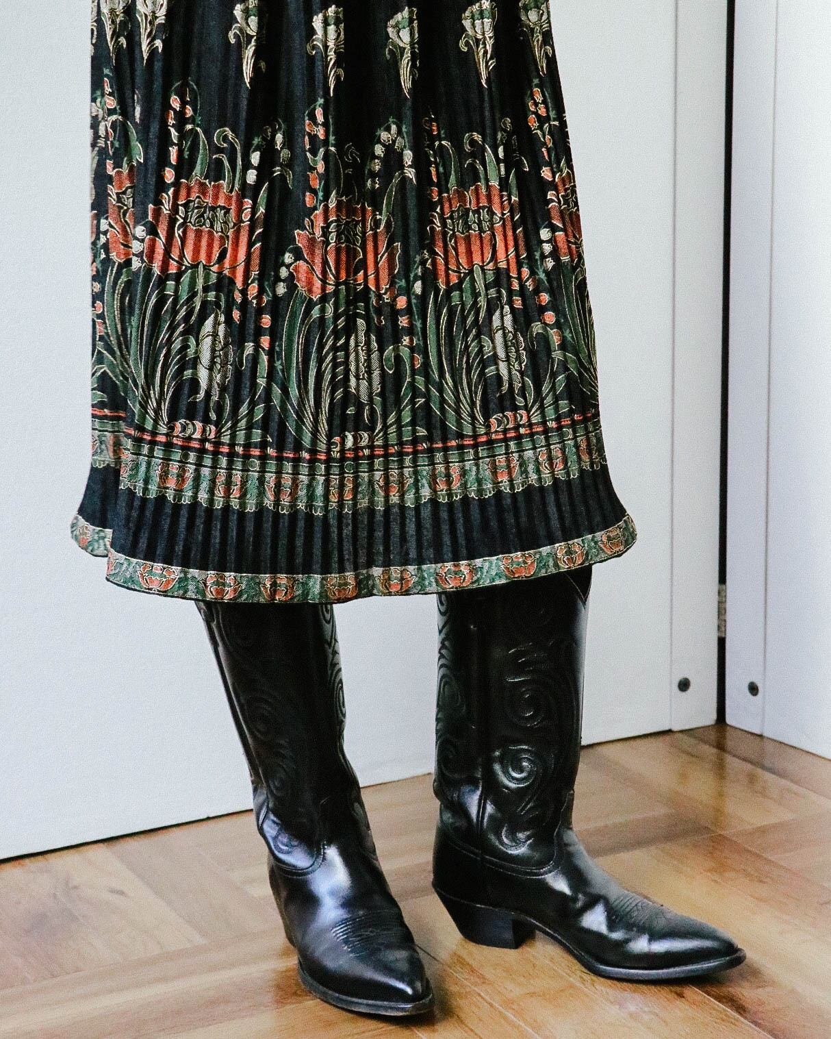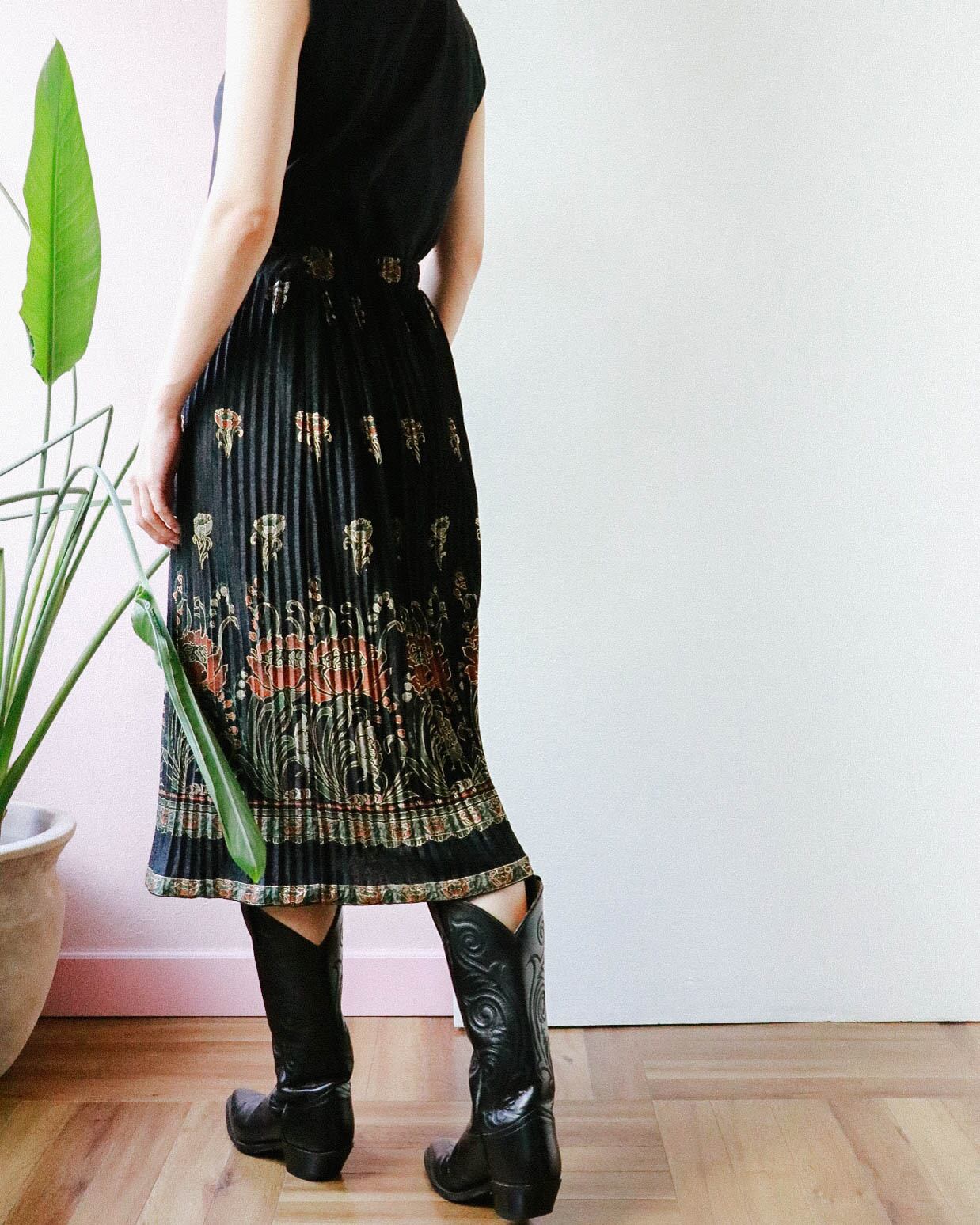 秋の雰囲気をいち早く楽しむのにお勧めなオリエンタルプリントのスカート。