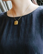 立体的な正方形のデザインがシャープに美しく輝くジバンシィのネックレス。彫刻のようなジュエリーは大人の洗練されたスタイリングに欠かせない。